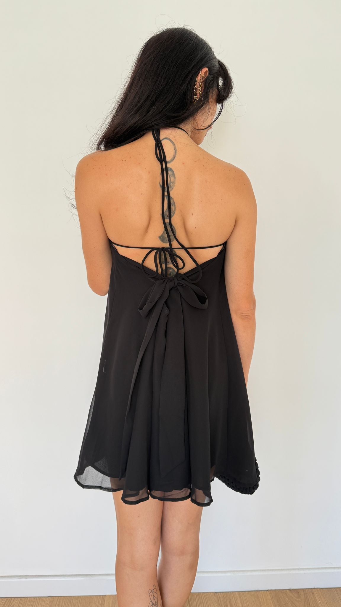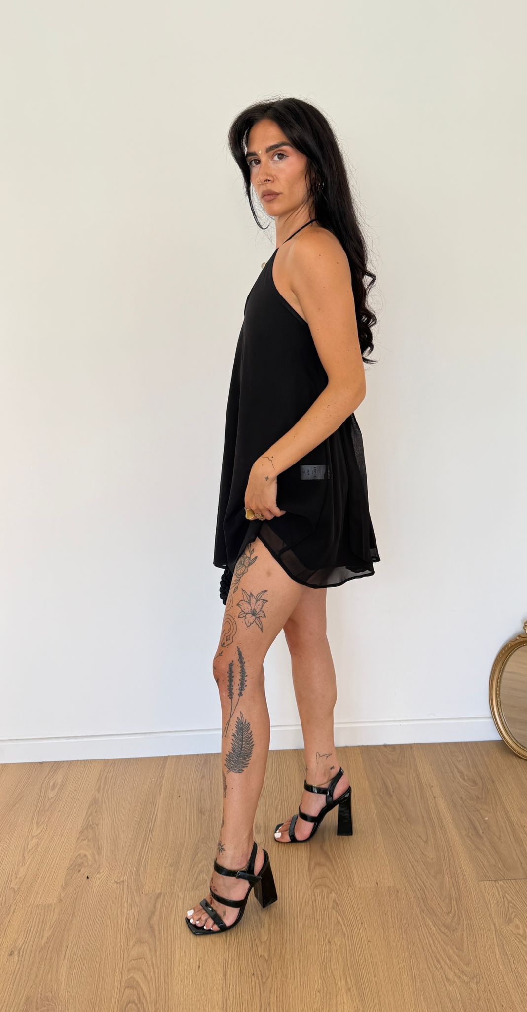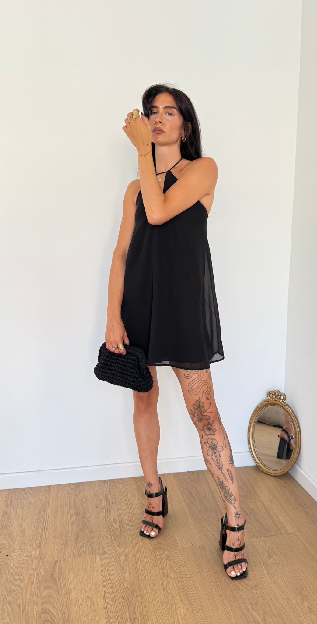 Abitino da donna vestibilita morbida con scollatura a V profonda sul retro e veste regolarmente la propria taglia e Giusy indossa taglia S