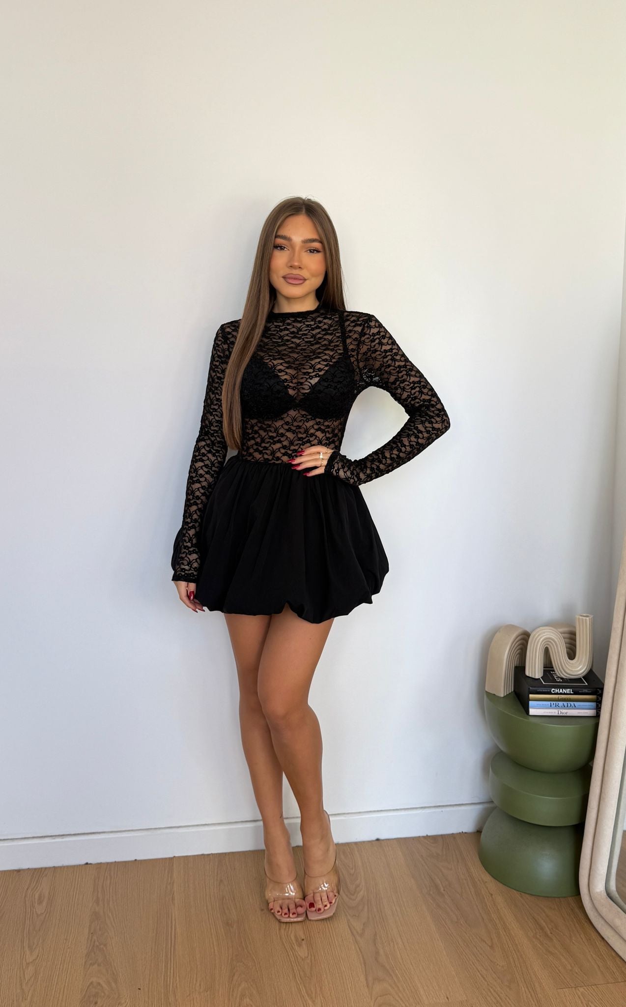 Vestitino da donna composto da parte superiore ricamata e gonna a palloncino, tessuto elasticizzato e vestirà bene fino a d una M piena