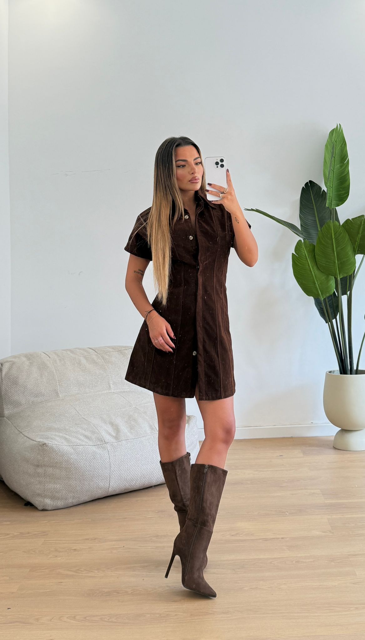 Abitino da donna tessuto camoscio e veste regolarmente la propria taglia e la modella indossa taglia S