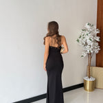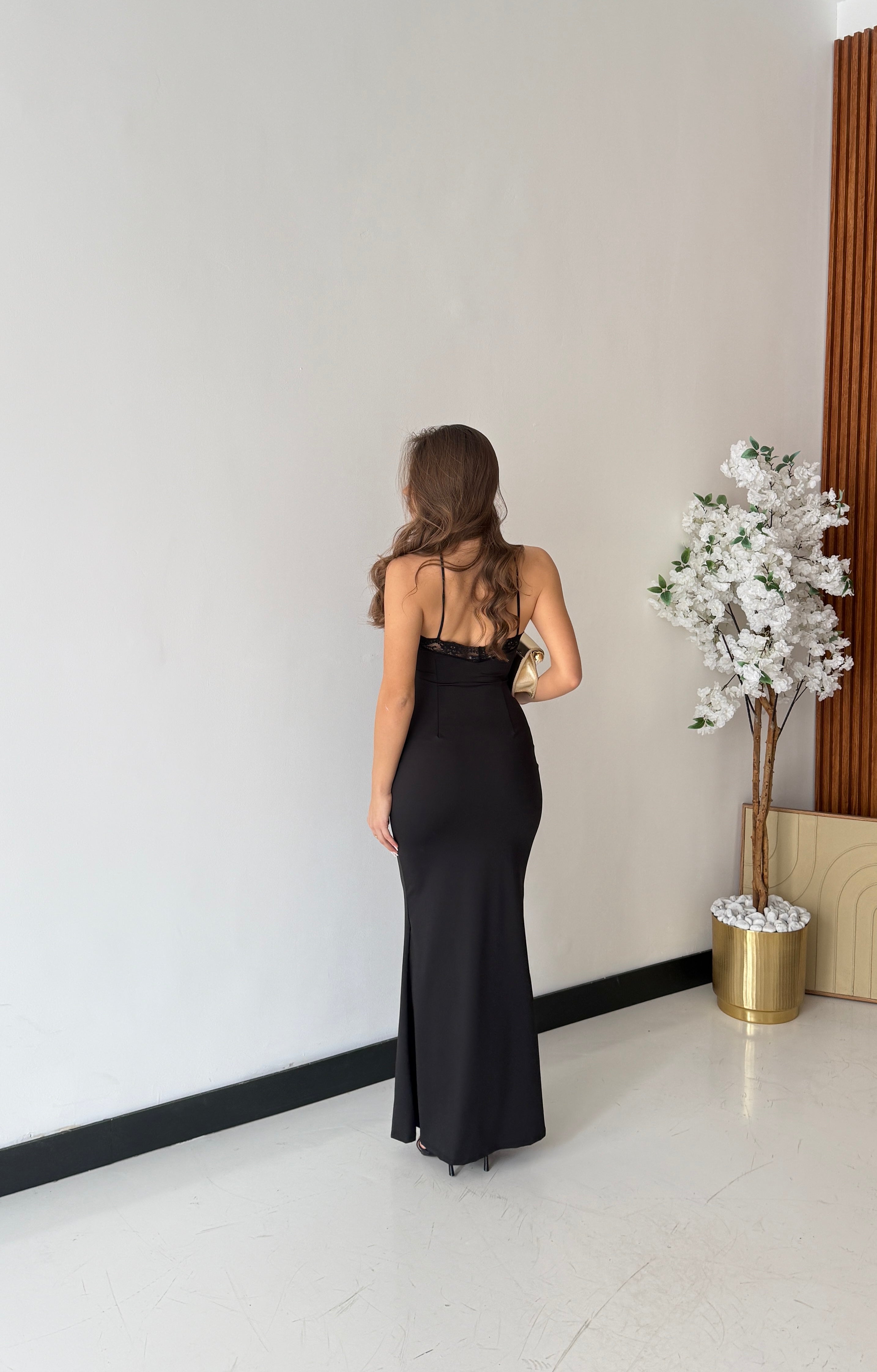 Abito da donna in lycra, tessuto elasticizzato, con dettagli in pizzo sia sul davanti che sul retro. Taglia unica, veste bene fino ad una taglia M piena. La modella è alta 1,65 e pesa 52/53kg.
