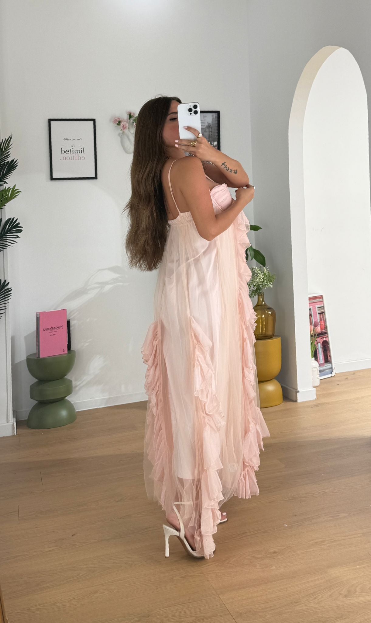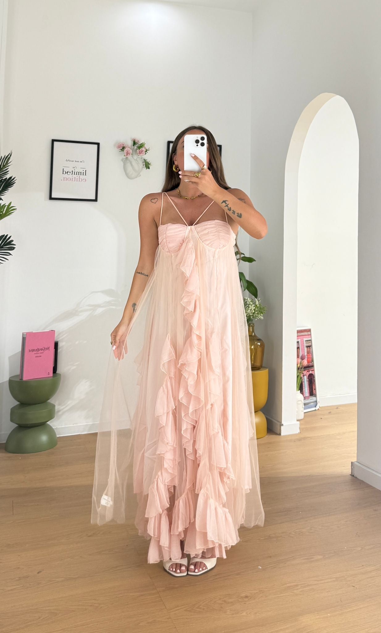 Abito da donna in tuller foderato internamente e con coppe leggermente imbottite, top quality e veste regolarmente la propria taglia e Giusy indossa taglia S