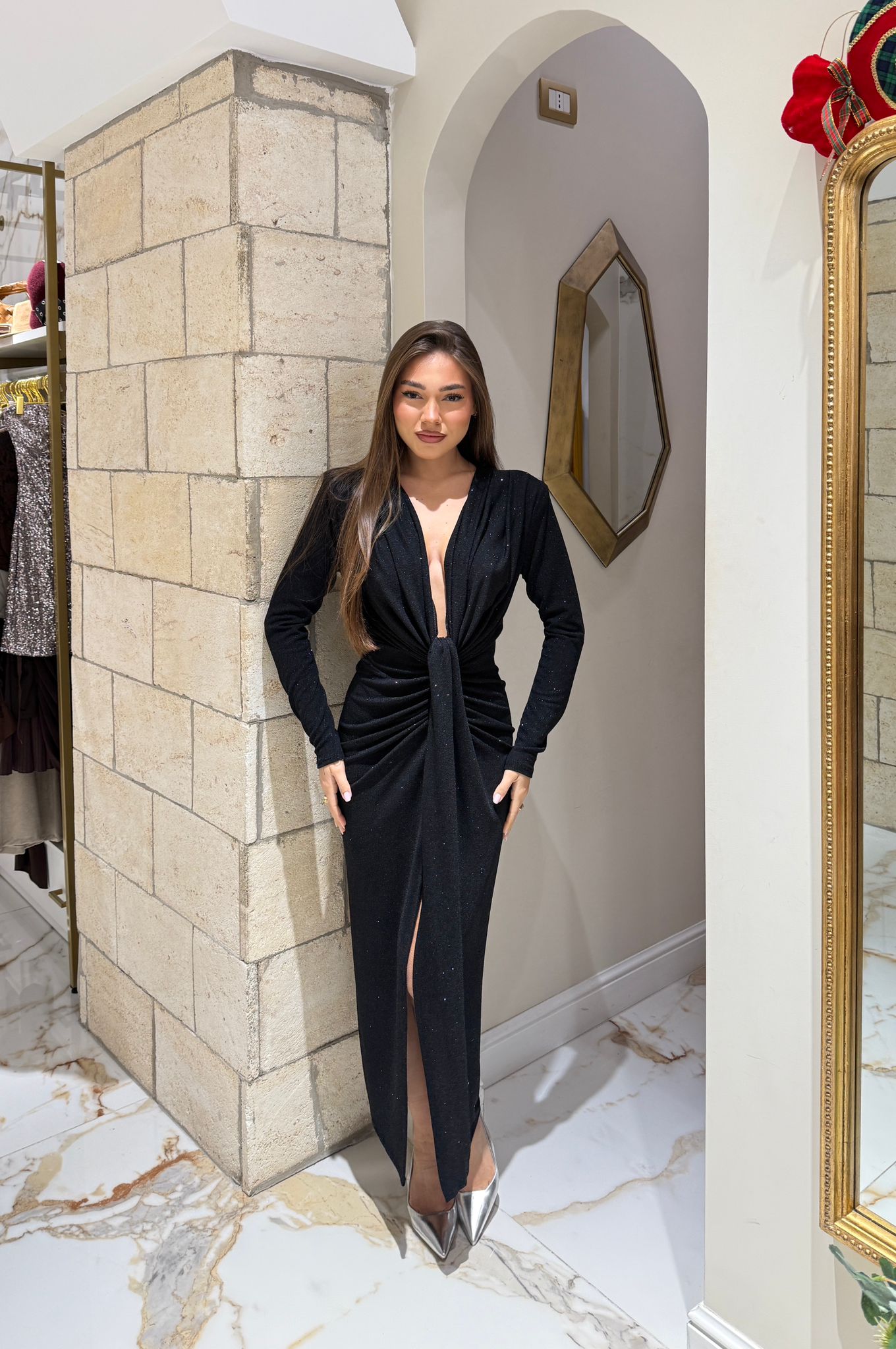 Abito da donna con spalline imbottite scollo sul davanti profondo, tessuto elasticizzato e vestirà bene fino ad una M/L