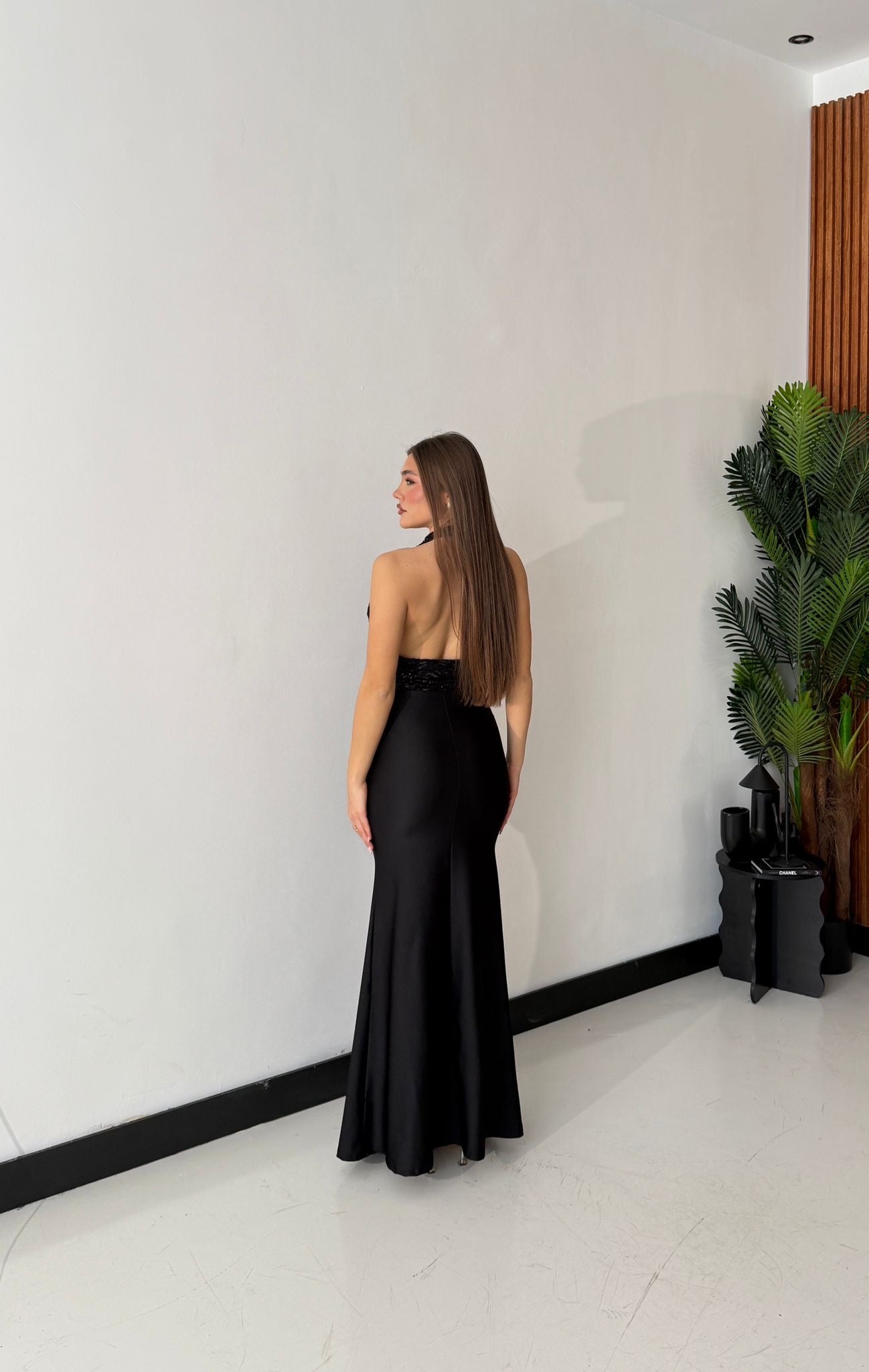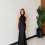 Abito da donna in lycra, tessuto elasticizzato, con colletto e chiusura a bottoncini sul retro del collo, dettagli in paillettes sulla parte superiore. Taglia unica, veste bene fino ad una taglia M piena. La modella è alta 1,65 e pesa 52/53kg.