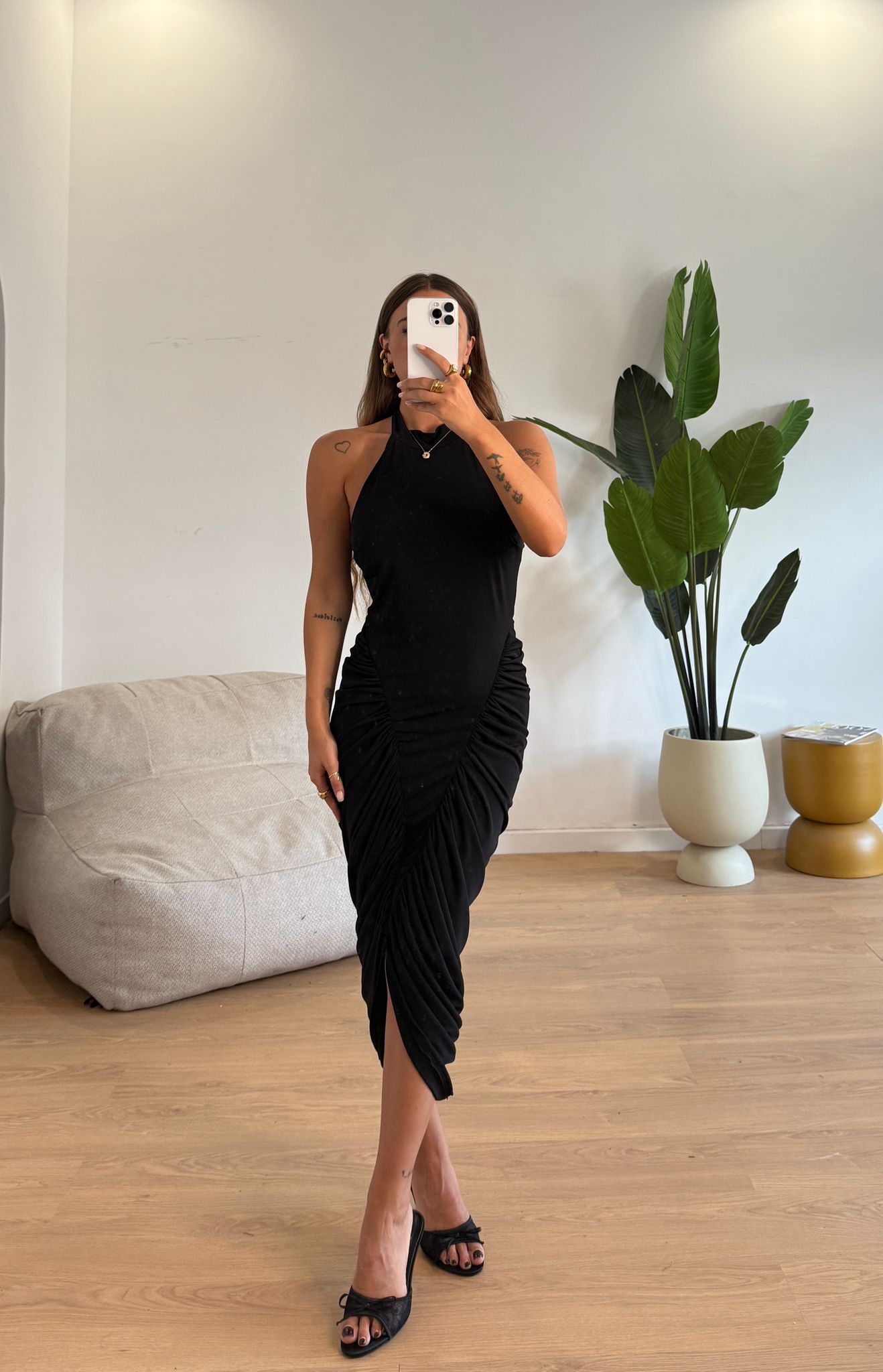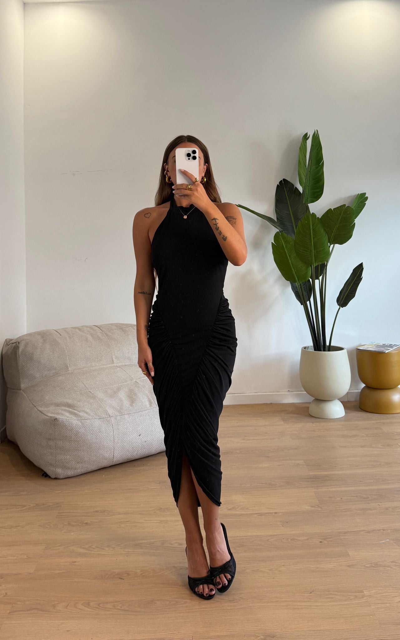 Abito da donna con coppe imbottite e schiena scoperta, tessuto elasticizzato e vestirà bene fino ad una M piena