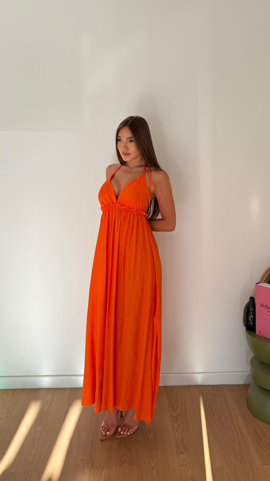 Abito da donna in semi Lino con schiena scoperta, veatibilita morbida e vestirà bene fino ad una M/L piena