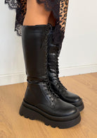 Anfibi da donna in ecopelle con zip interna e lacci sul davanti.