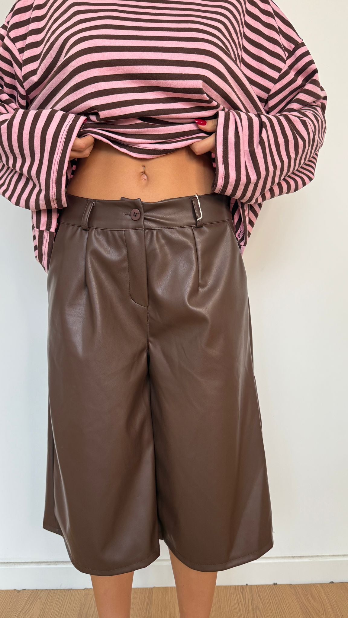 Bermuda da donna in ecopelle con elastico sul retro e vestirà bene fino ad una M/L