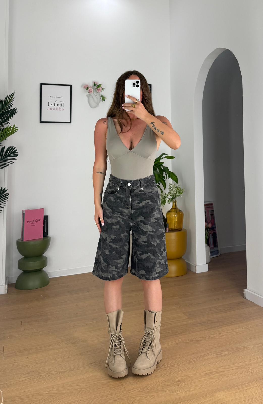 Bermuda in denim, vestibilità over. Giusy indossa taglia S.