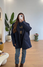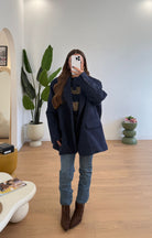 Giacca/cappotto da donna con spalline imbottite, vestibilità oversize. Taglia unica, veste fino ad una L/XL.