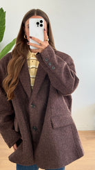 Giacca/cappotto da donna con spalline imbottite, vestibilità oversize. Taglia unica, veste fino ad una L/XL.
