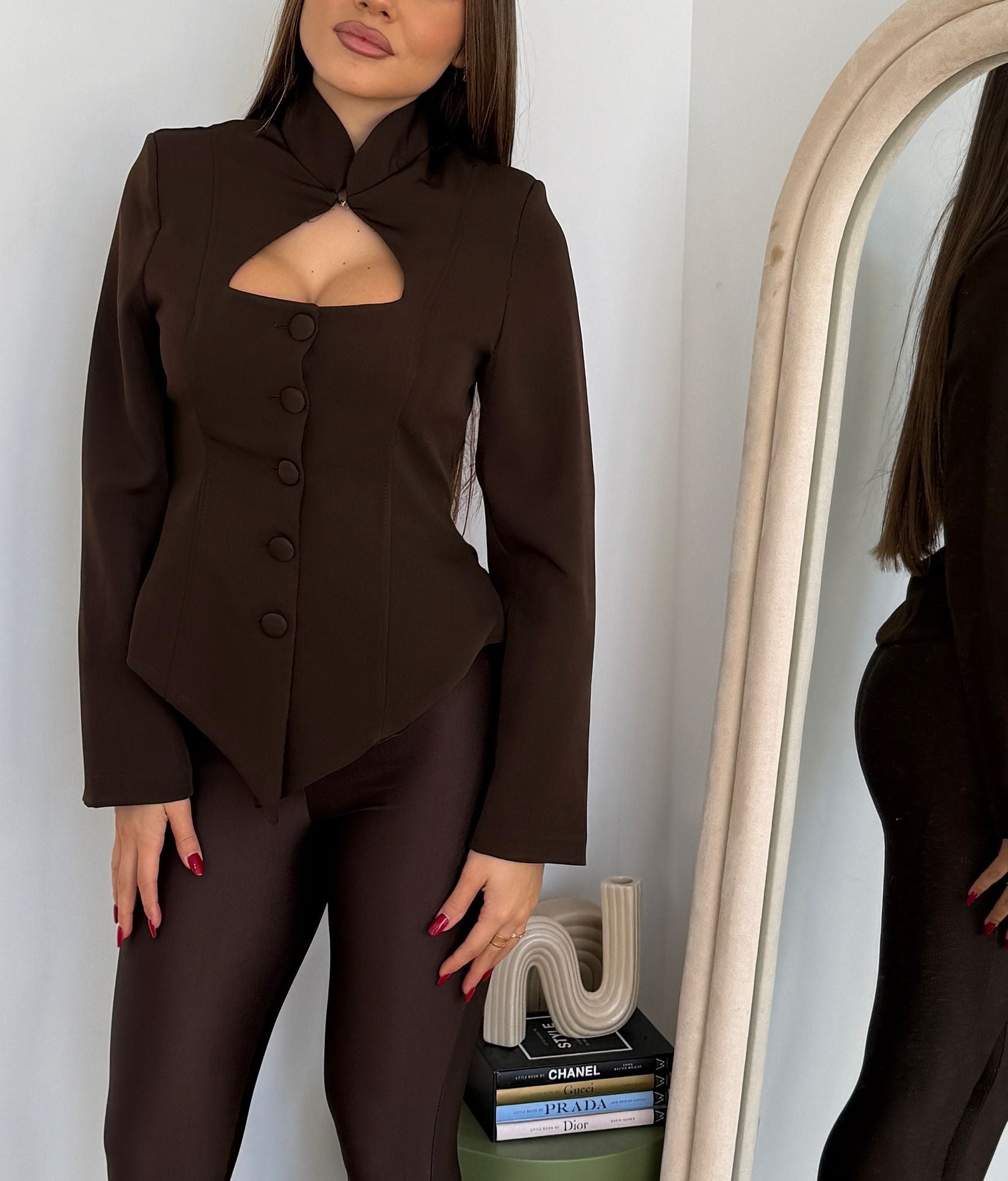 Blusa da donna in cotone elastico spesso con bottoncini apribili e colletto, vestibilita fino ad una 44