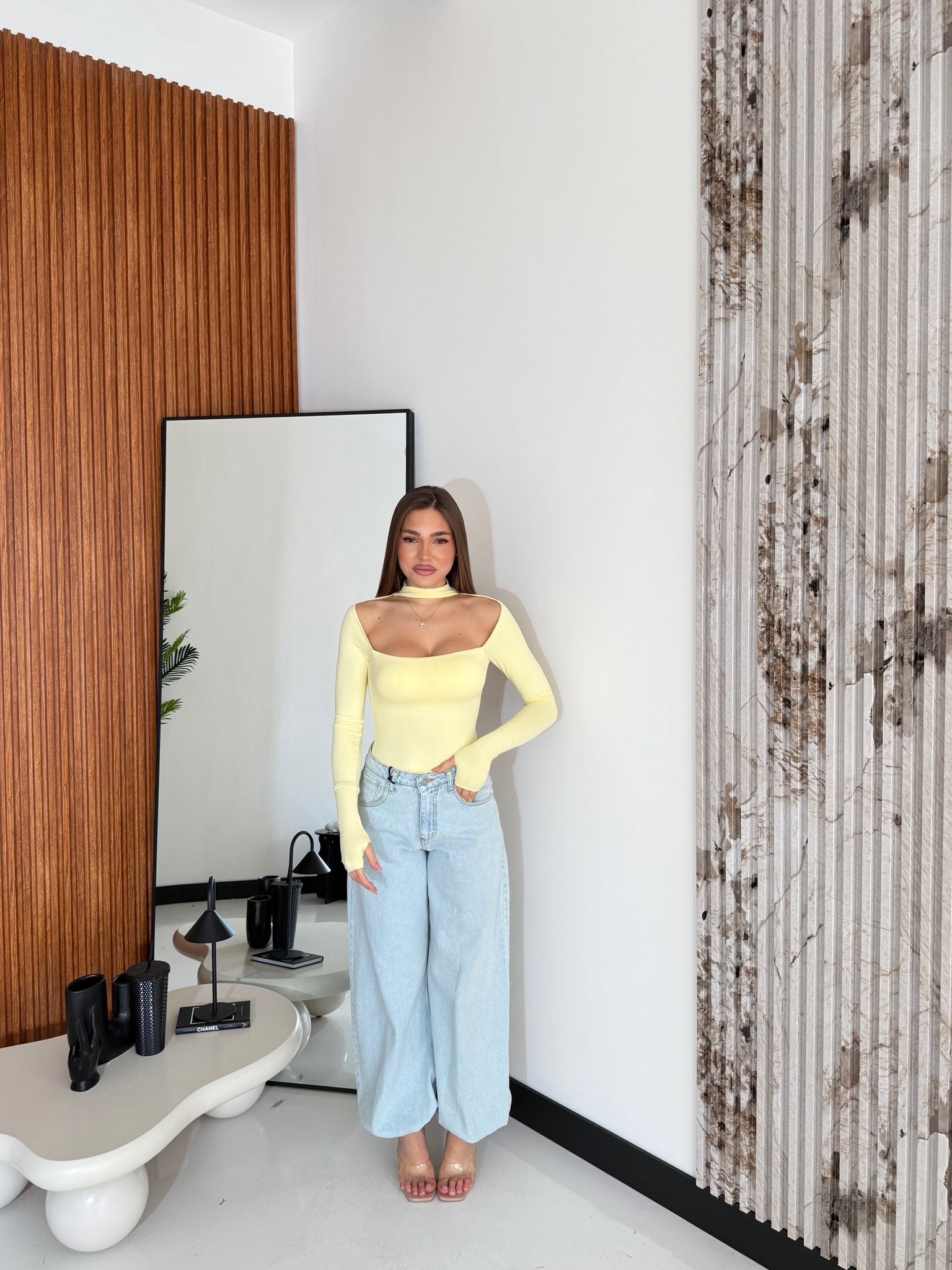 Body da donna in lycra con scollo, coppe imbottite e maniche a guanto. Tessuto elasticizzato, taglia unica, veste bene fino ad una taglia M/L. La modella è alta 1,65 e pesa 52/53kg.