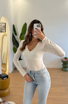 Body da donna con spalline imbottite e scollo a V sul davanti, tessuto elasticizzato in cotone leggero, veste bene fino ad una 44 piena.
