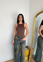 Body da donna in lycra tessuto elasticizzato ma veste regolarmente la propria taglia e la modella indossa taglia XS