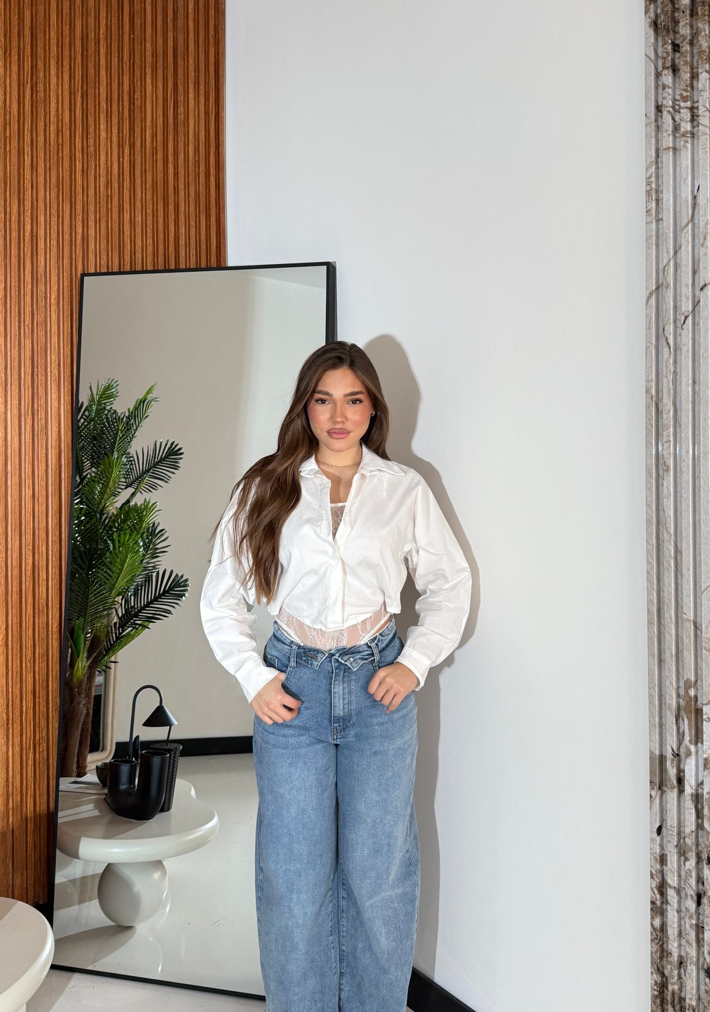 Camicia con body ricamato cucito internamente e vestita bene fino a dina M/L e la modella è alta 1,65 cm e pesa 52/63 kg