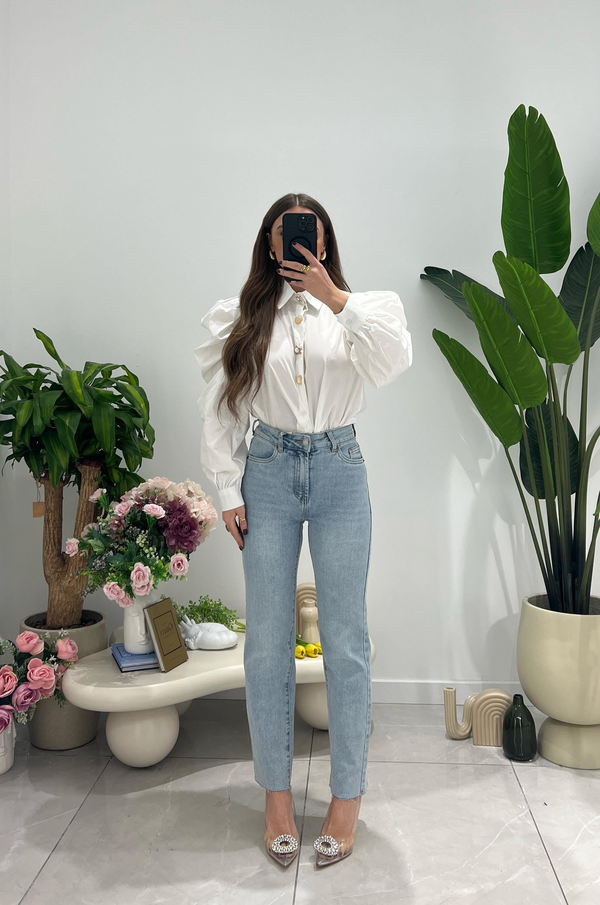 Camicia con spalla ampia e manica regolare. Veste regolarmente la propria taglia. Giusy indossa la taglia S/M.