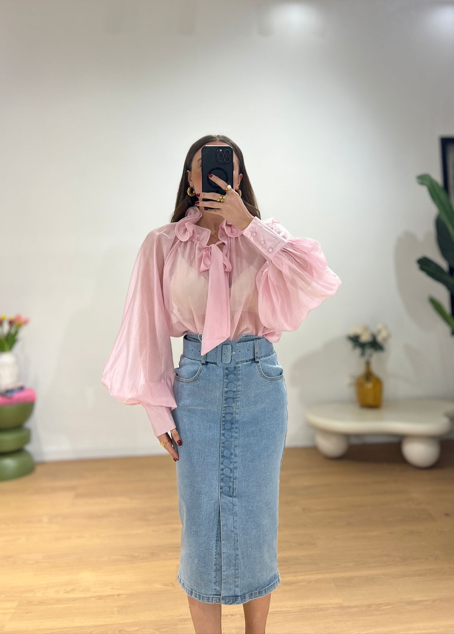 Camicia da donna semi trasparente con manica a sbuffo, vestibilita oversize e vestira bene fino ad una M/L piena