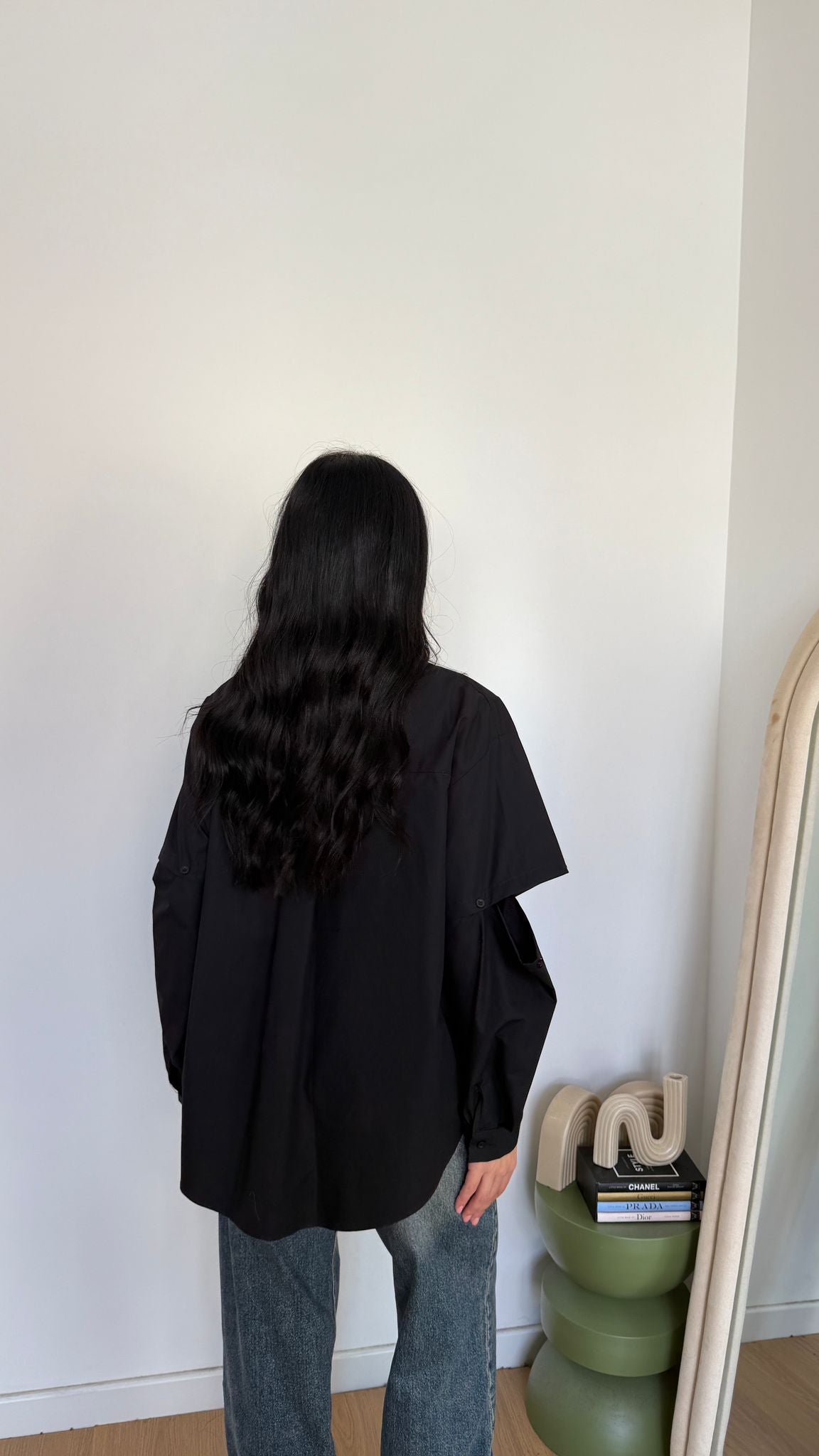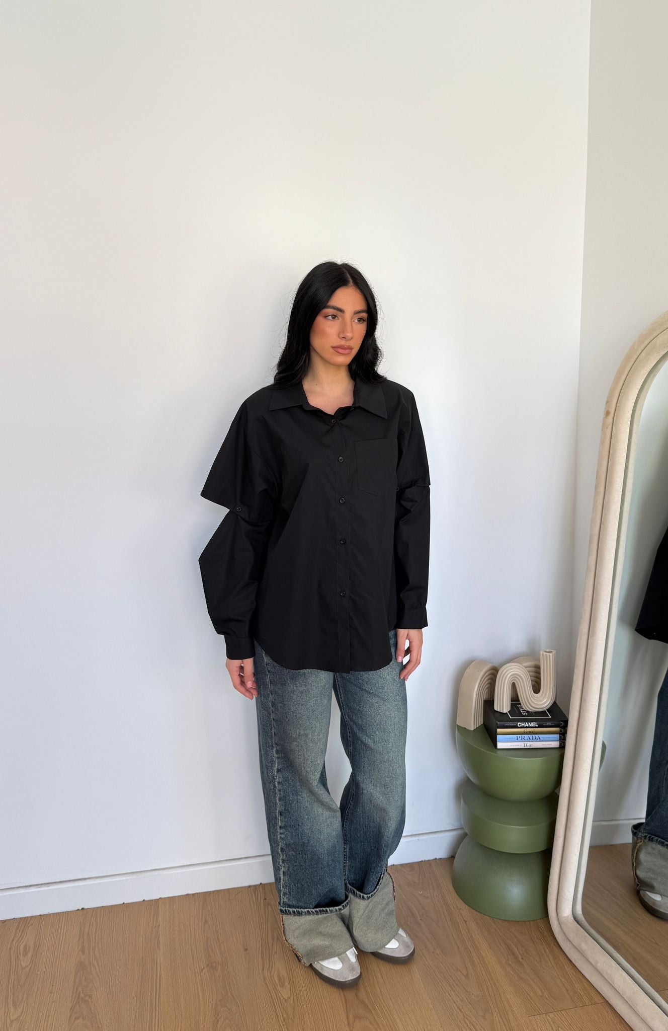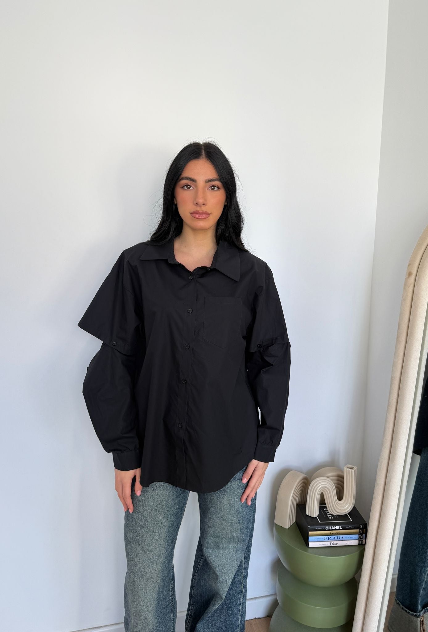 Camicia da donna con spalline imbottite e maniche removibili modello oversize e vestirà bene fino ad una M/L