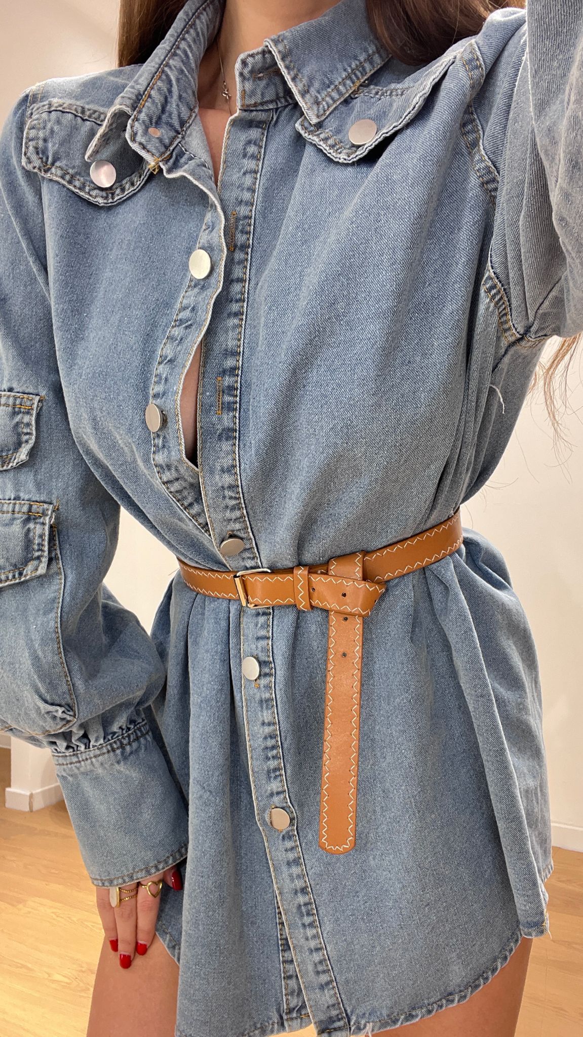 Camicione da donna vestibilita over ma veste regolarmente la propria taglia e Giusy indossa taglia S