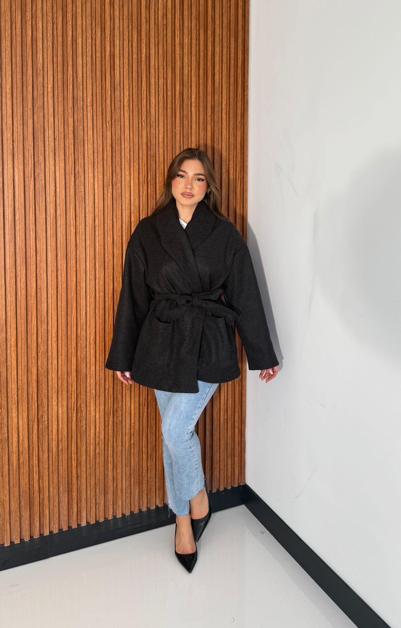 Cappottino da donna foderato internamente con cinturino compreso e vestirà bene fino ad una M/L piena