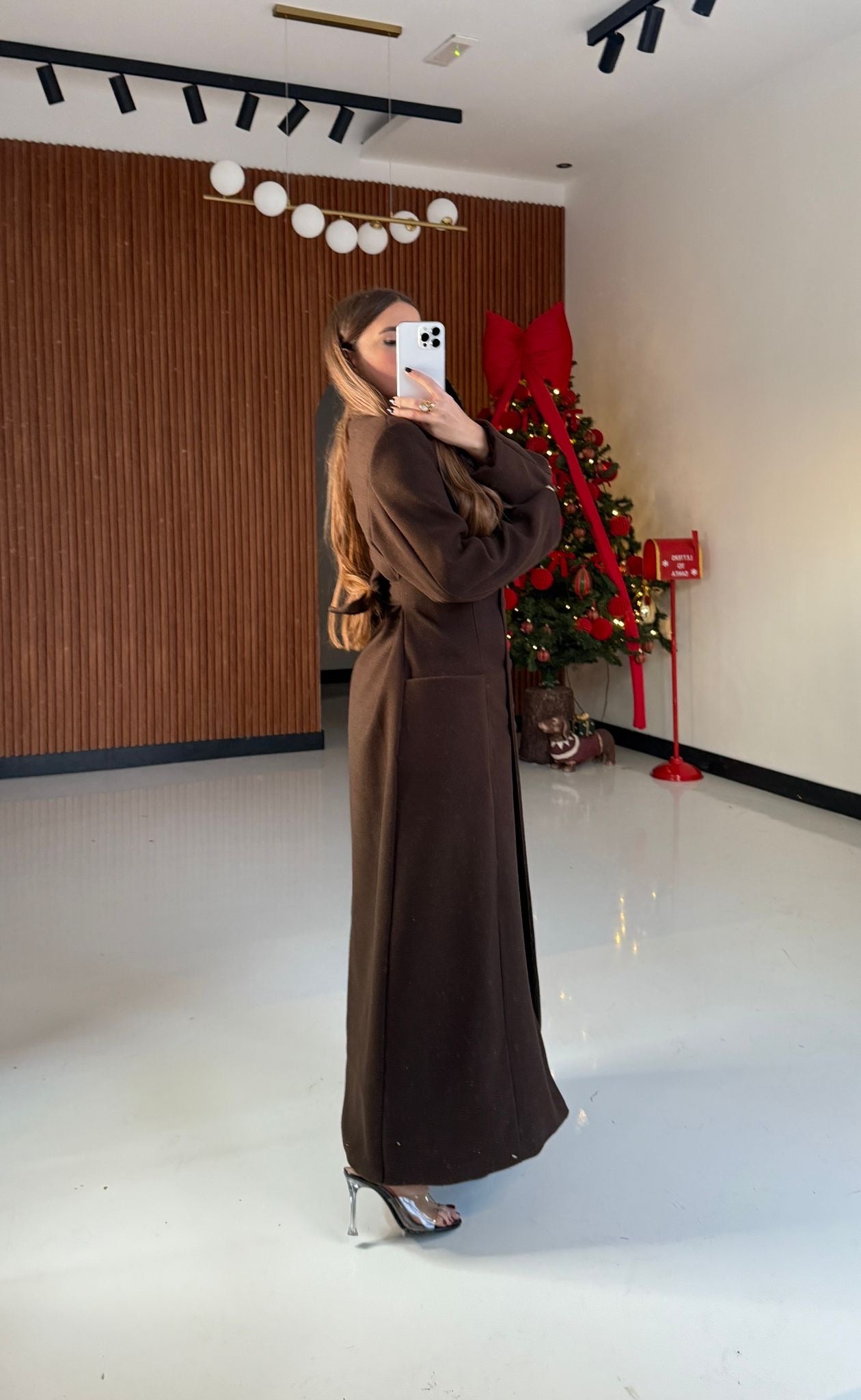 Cappotto da donna foderato internamente, con chiusura a bottoni sul davanti e cintura cucita, non rimovibile. Taglia unica, veste bene fino ad una M/L.
