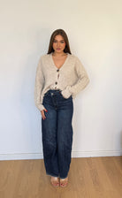 Cardigan da donna in caldo cotone con manica a sbuffo e polsini, chiusura sul davanti con bottoncini e veste bene fino ad una  M/L