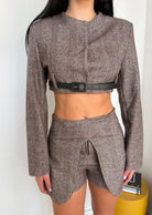 Coordinati da donna composto da giacca crop con spalline foderata internamente e shorts a vita alta, vestirà bene fino ad una M piena