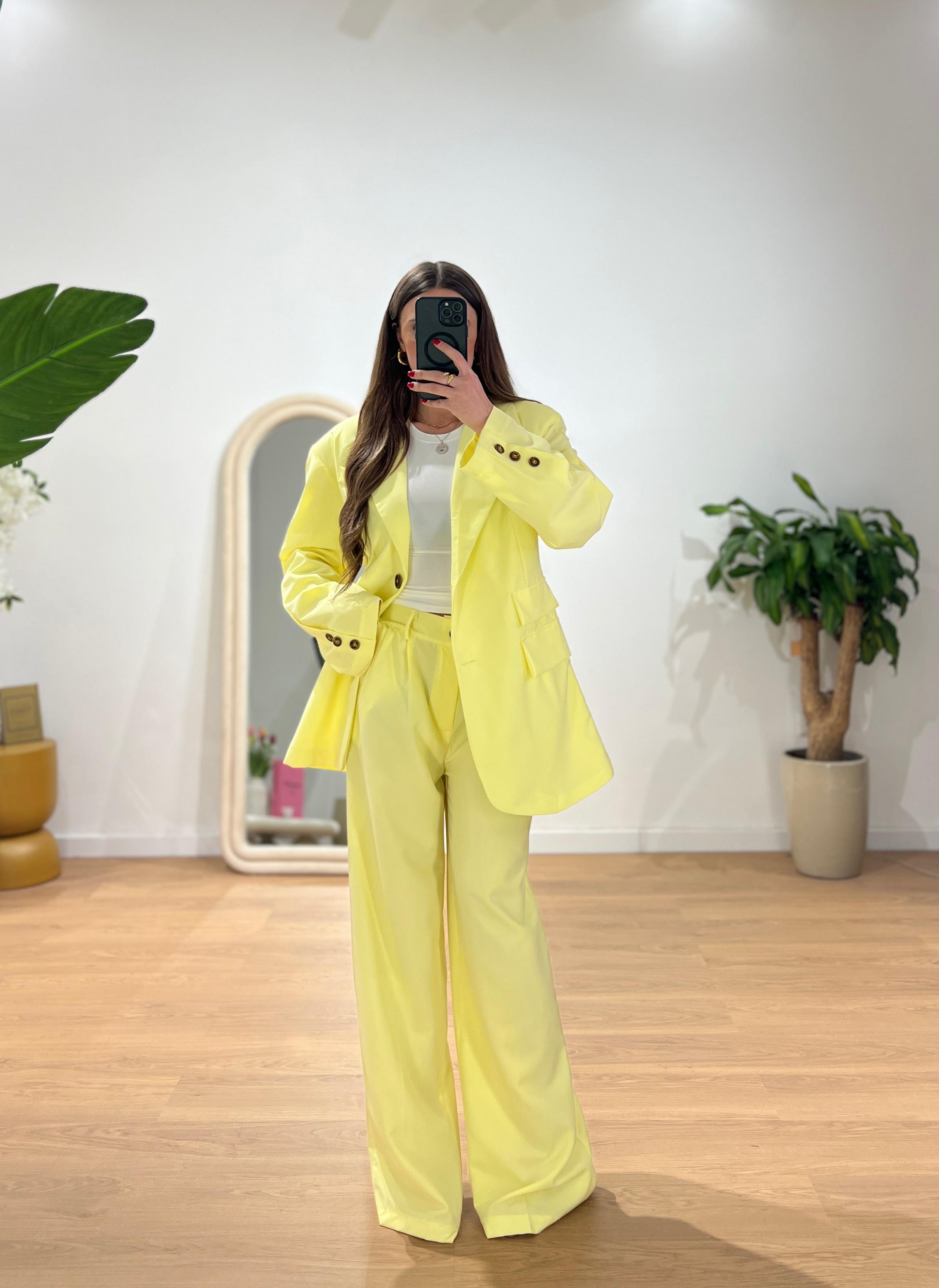 Coordinato da donna composto da giacca over foderata internamente con spalline imbottite e pantalone con elastico sul retro e vestirà bene fionda una M/L