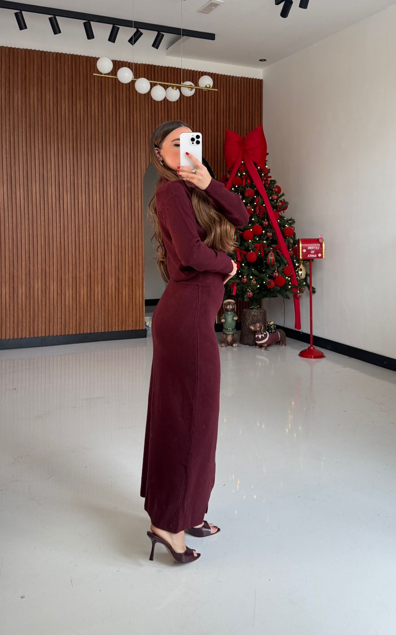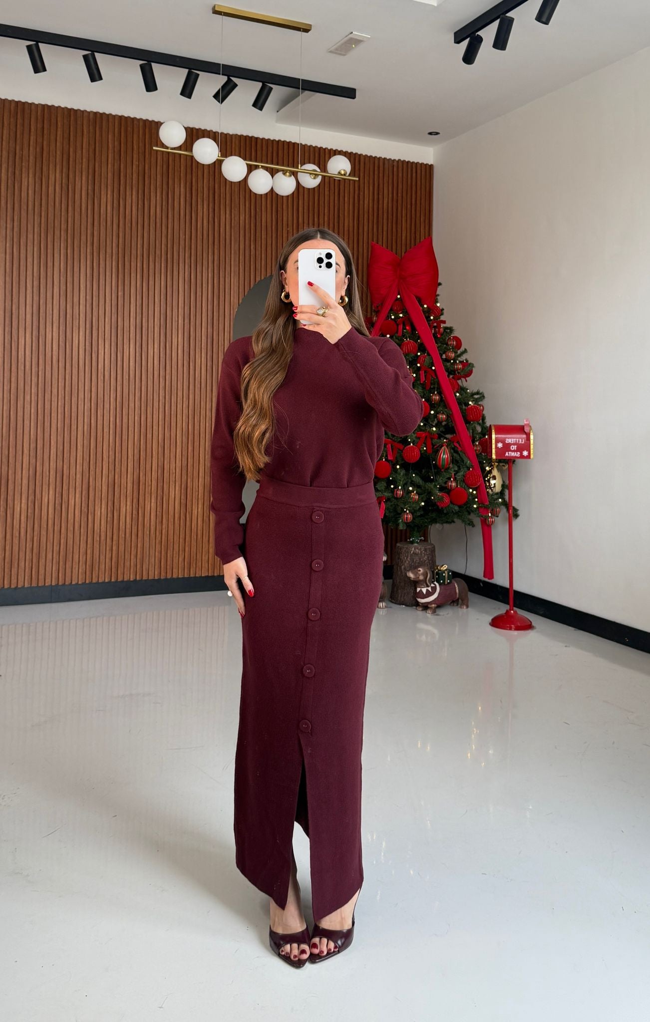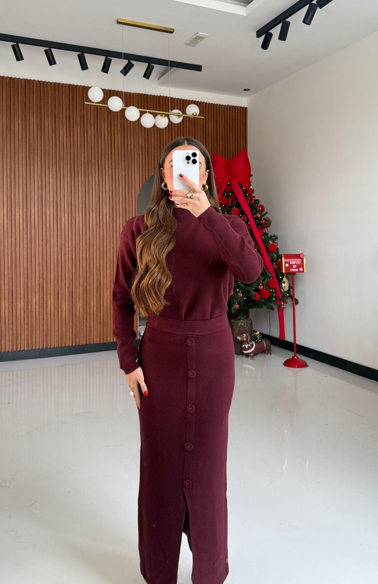Coordinato da donna composto da maglia leggermente crop e gonna con elastico in vita interno, tessuto elasticizzato in lana rasata e vestirà bene fino ad una M/L piena