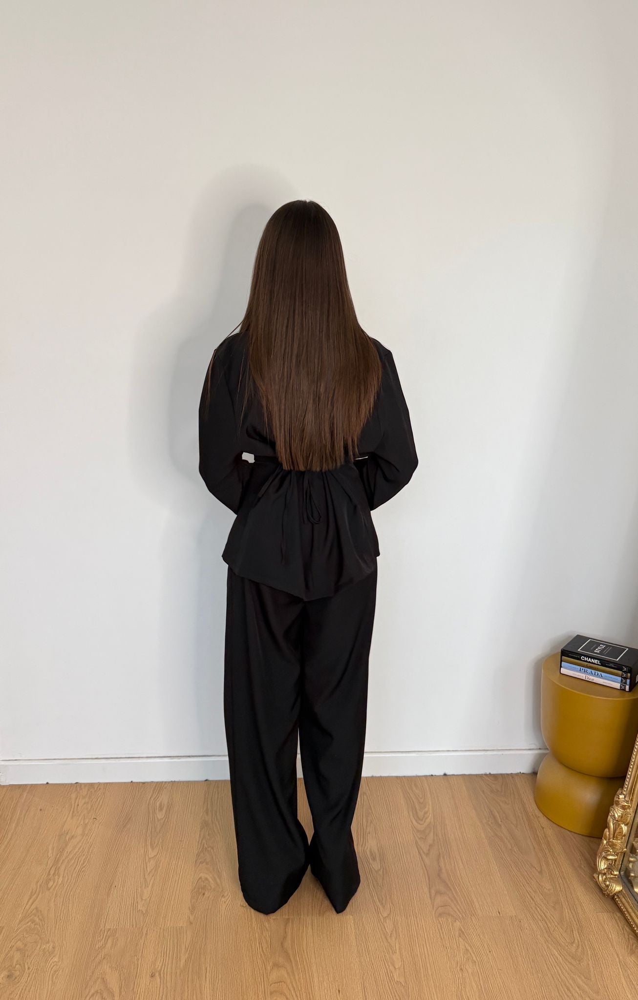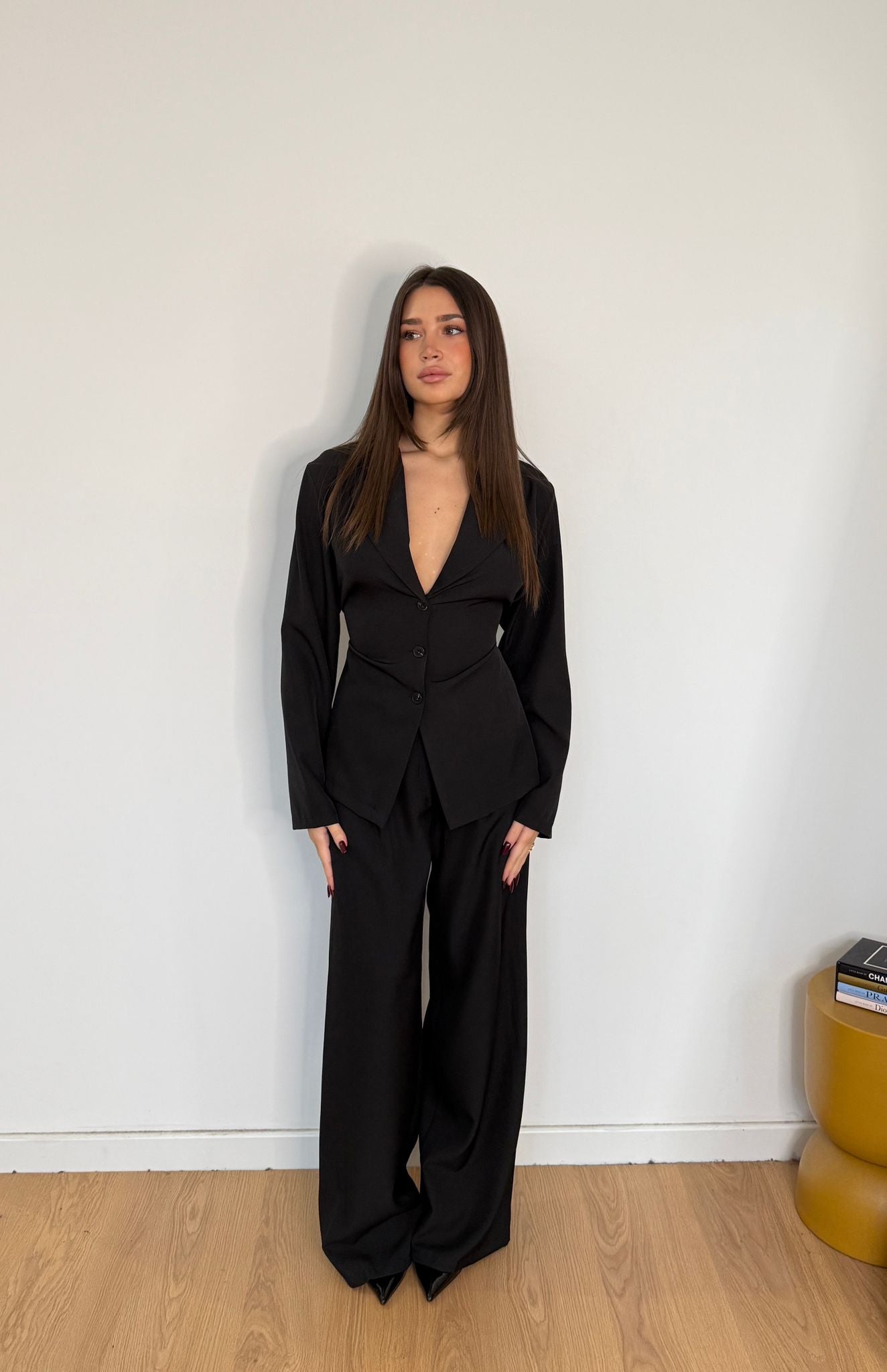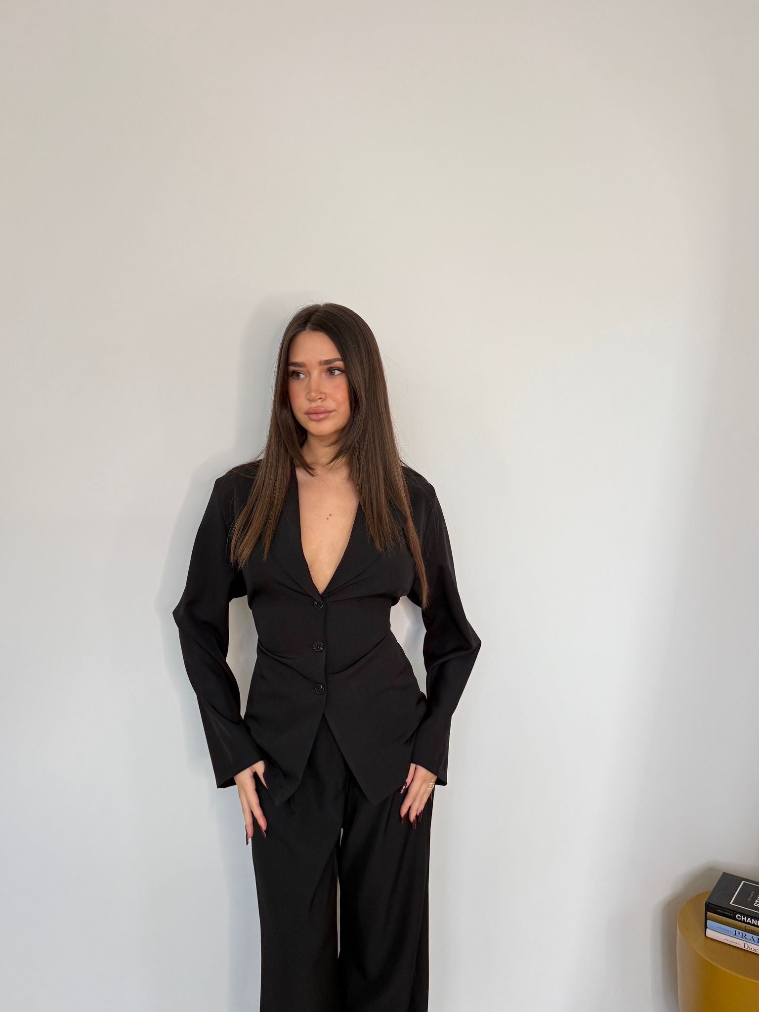 Coordinato da donna composto da giacca foderata internamente e con spalline imbottite, pantalone con elastico in vita sul retro e vestirà bene fino ad una M/L