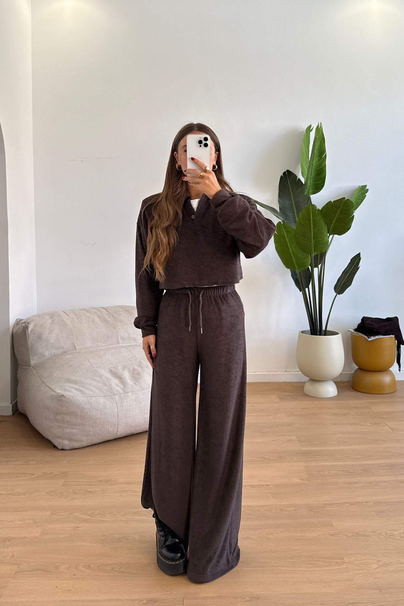 Coordinato da donna composto da felpa crop pantalone con elastico in vita e vestirà bene fino ad una M/L