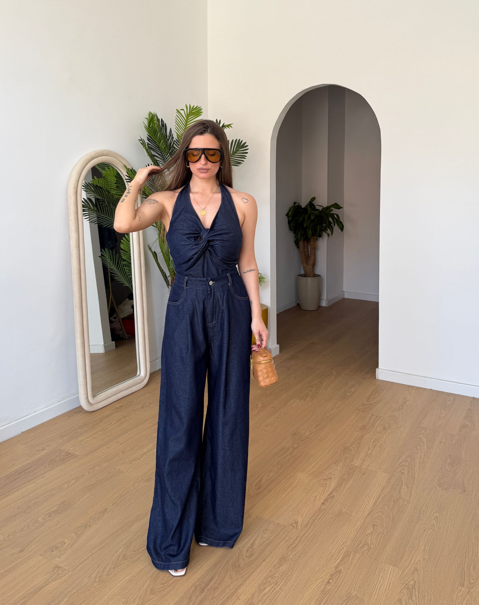 Coordinato da donna composto da top con coppe imbottite mentre il pantalone è a gamba larga con elastico sul retro in vita e vestirà bene fino ad una L