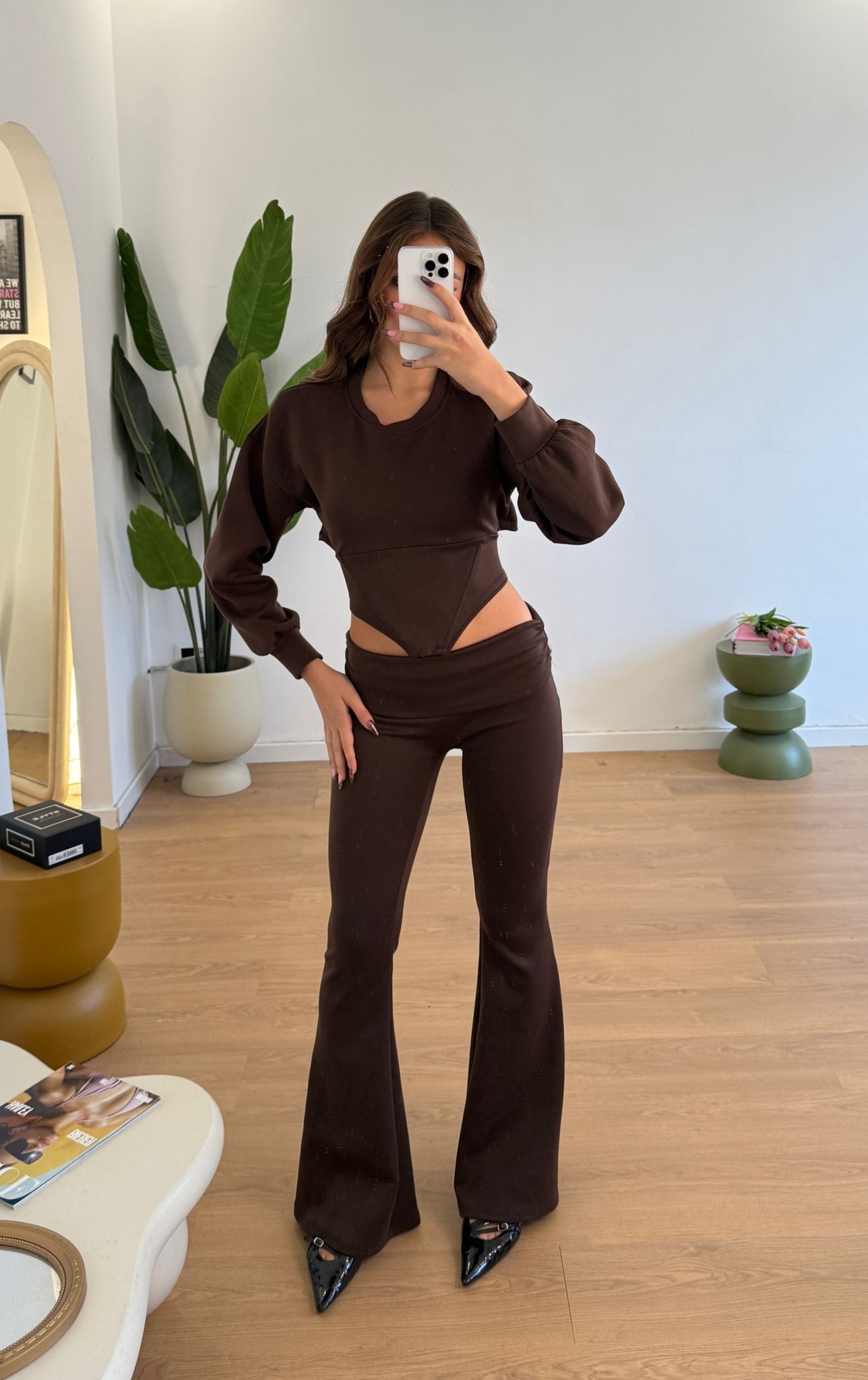 Coordinato da donna composto da felpa crop e pantalone con elastico in vita interno e vestirà bene fino ad una M/L