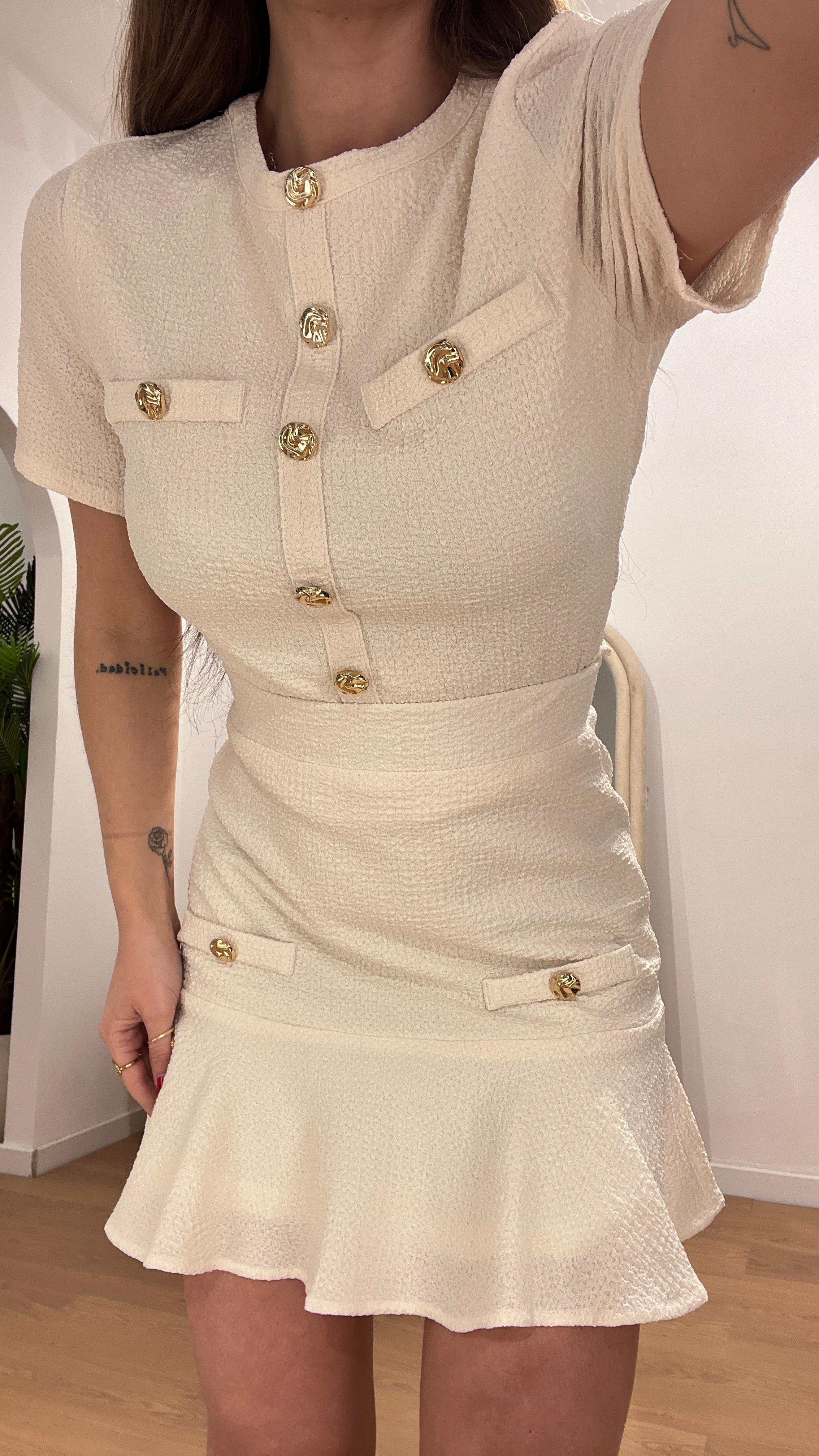 Coordinato da donna composto da maglia con bottoncini finti in oro e gonna con chiusura zip laterale, tessuto elasticizzato ma veste regolarmente la propria taglia e giusy indossa taglia S