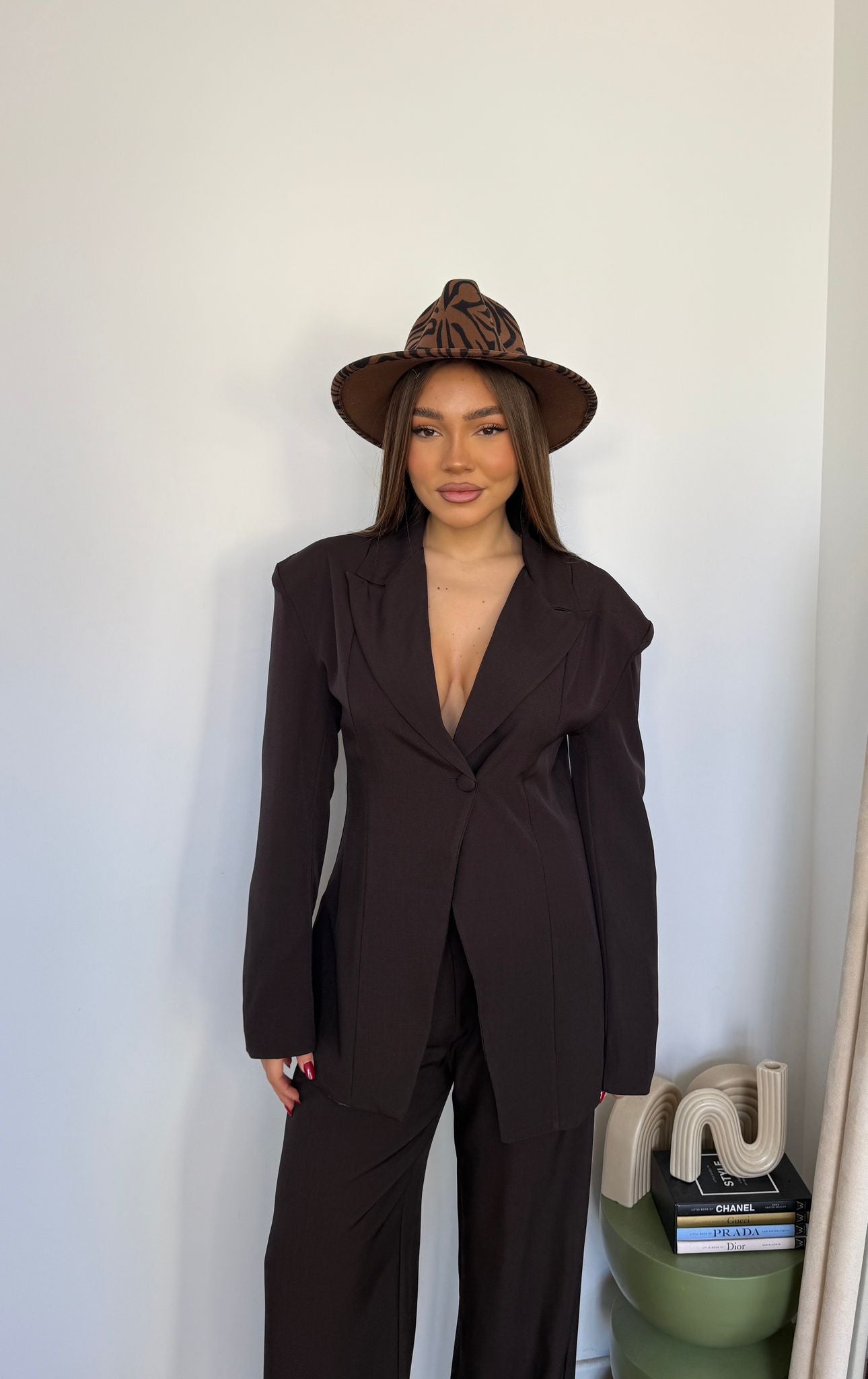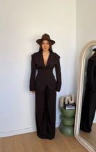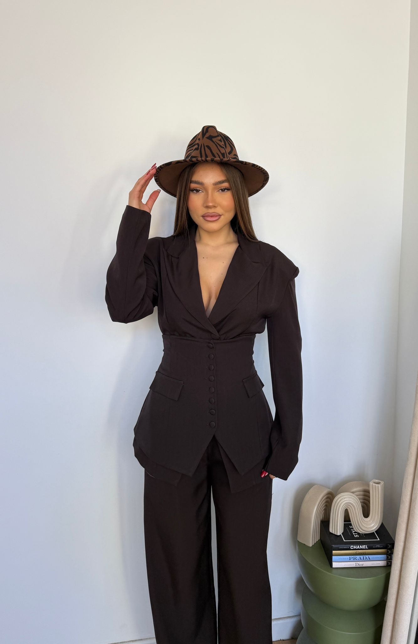 Coordinato da donna composto da giacca con spalline imbottite e foderar internamente, corsetto e pantalone con elastico in vita e vestirà bene fino ad una M/L