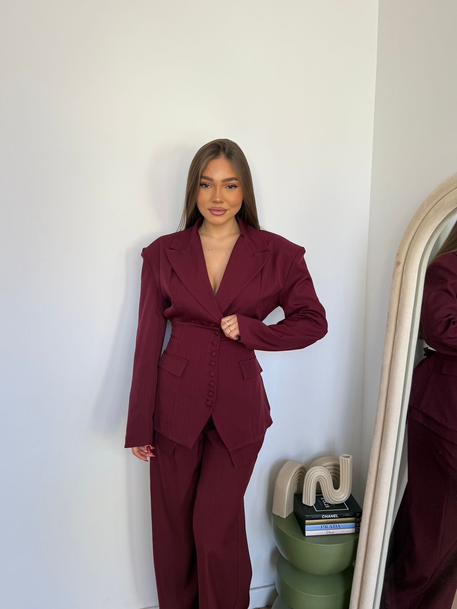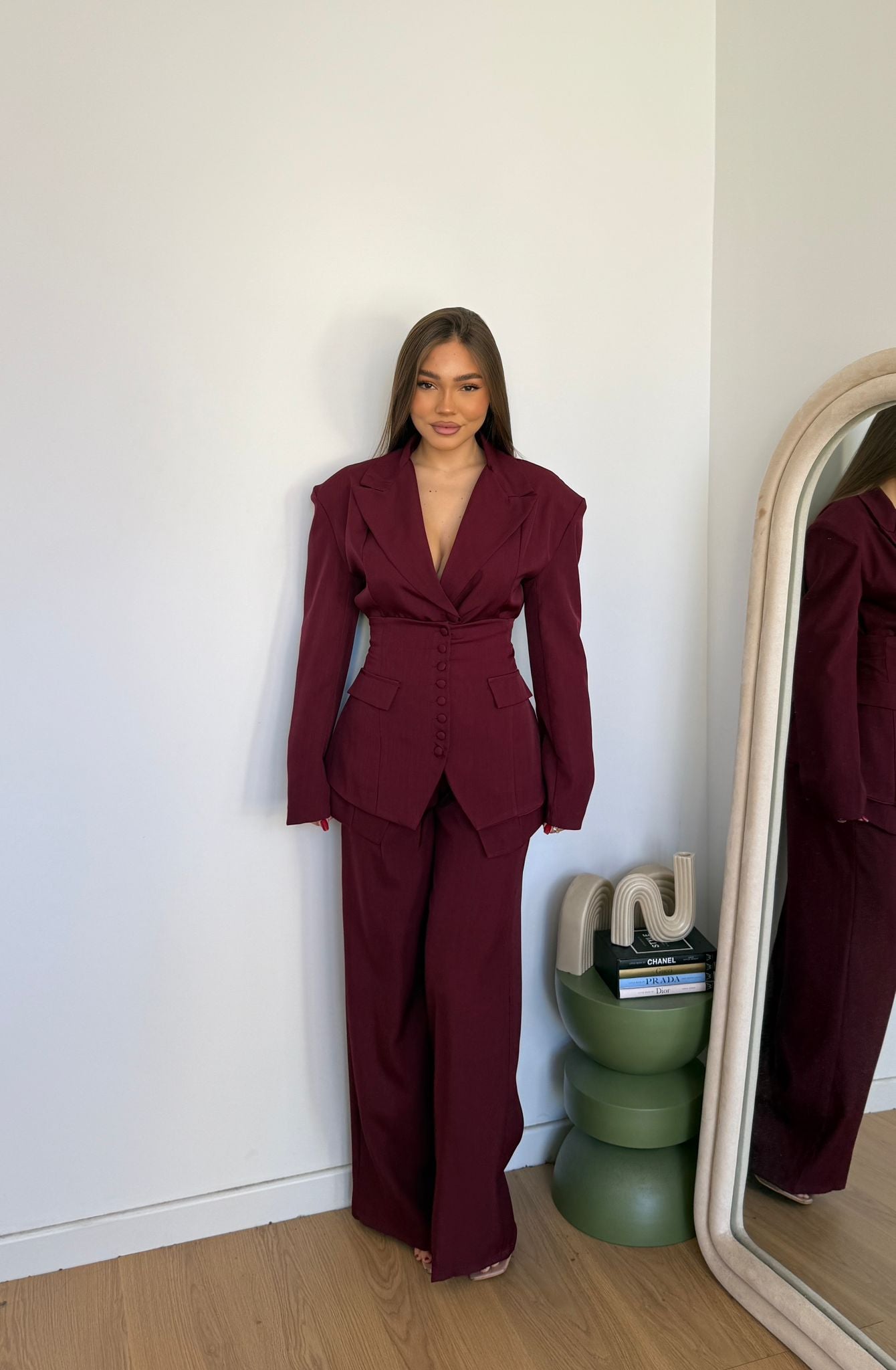 Coordinato da donna composto da giacca con spalline imbottite e foderar internamente, corsetto e pantalone con elastico in vita e vestirà bene fino ad una M/L