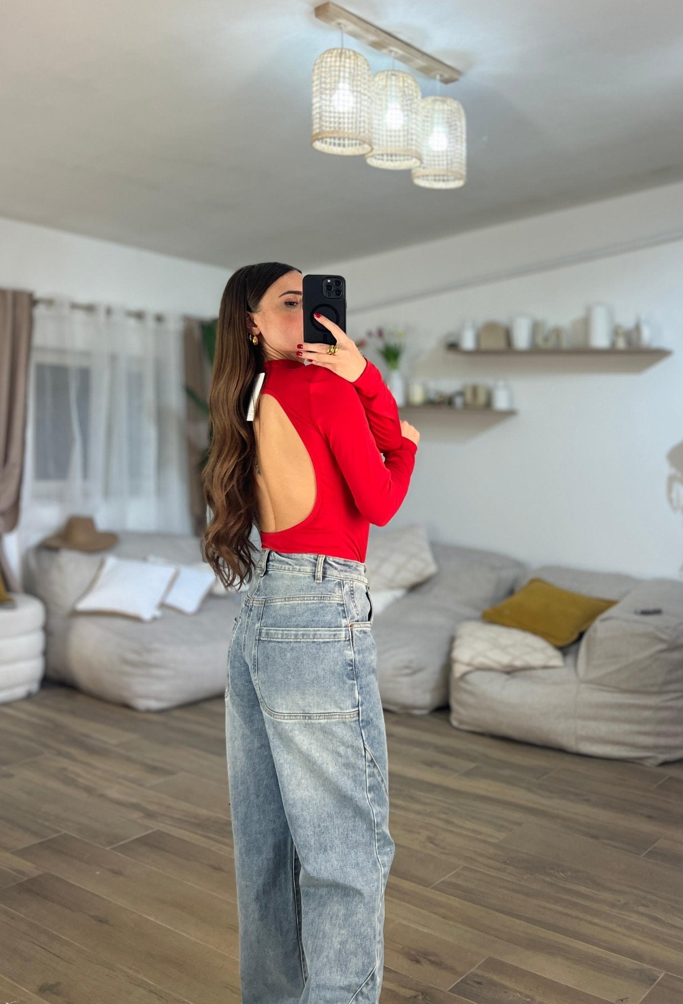 Body da donna con coppe imbottite, mezzo colletto e schiena scoperta, veste fino ad una M/L