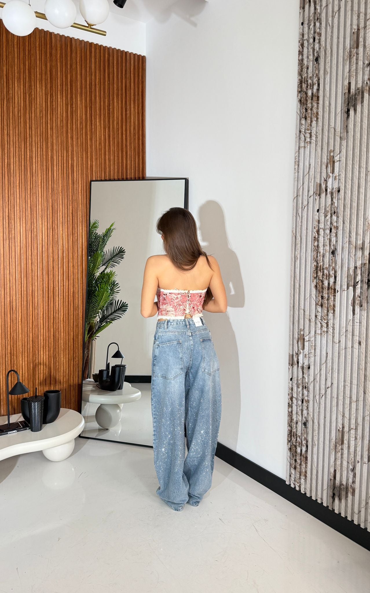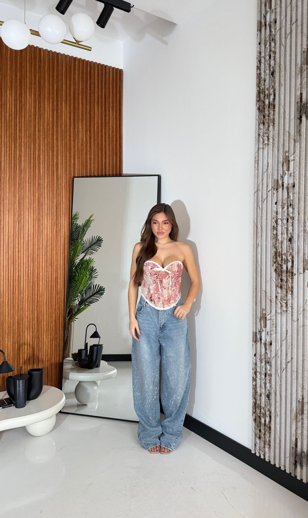 Corpetto a fantasia con coppe leggermente imbottite e chiusura sul retro con laccio regolabile a intreccio e veste bene la propria taglia e la modella indossa taglia S/M ed è alta 1,65 cm e pesa 5253 kg