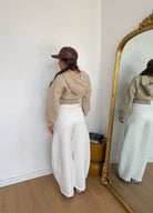 Felpa da donna crop con cappuccio e chiusura zip sul davanti, felpata internamente e vestirà bene fino ad una M/L
