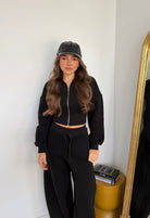 Felpa da donna crop con cappuccio e chiusura zip sul davanti, felpata internamente e vestirà bene fino ad una M/L
