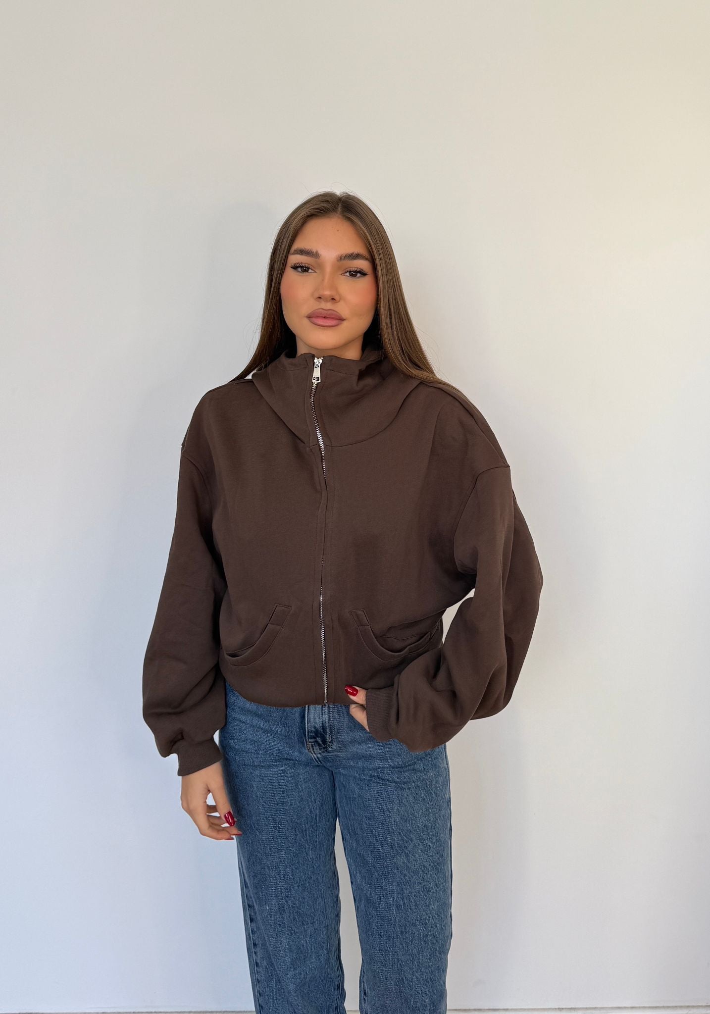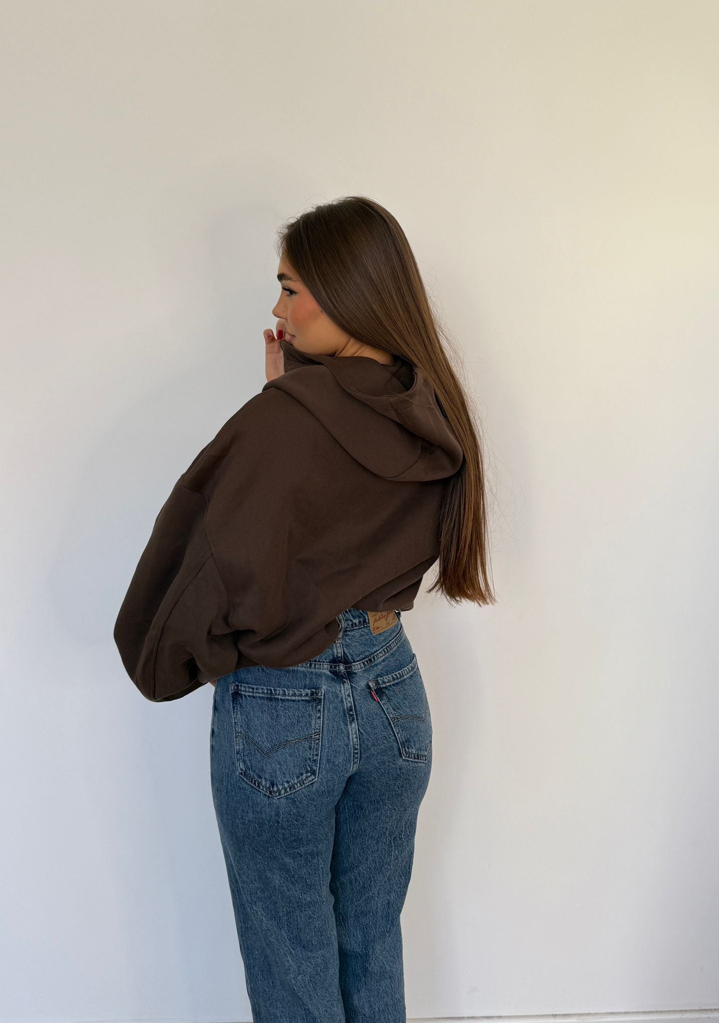 Felpa da donna modello oversize con cappuccio e zip chiusura sul davanti con polsini e vestirà bene fino ad una M/L piena