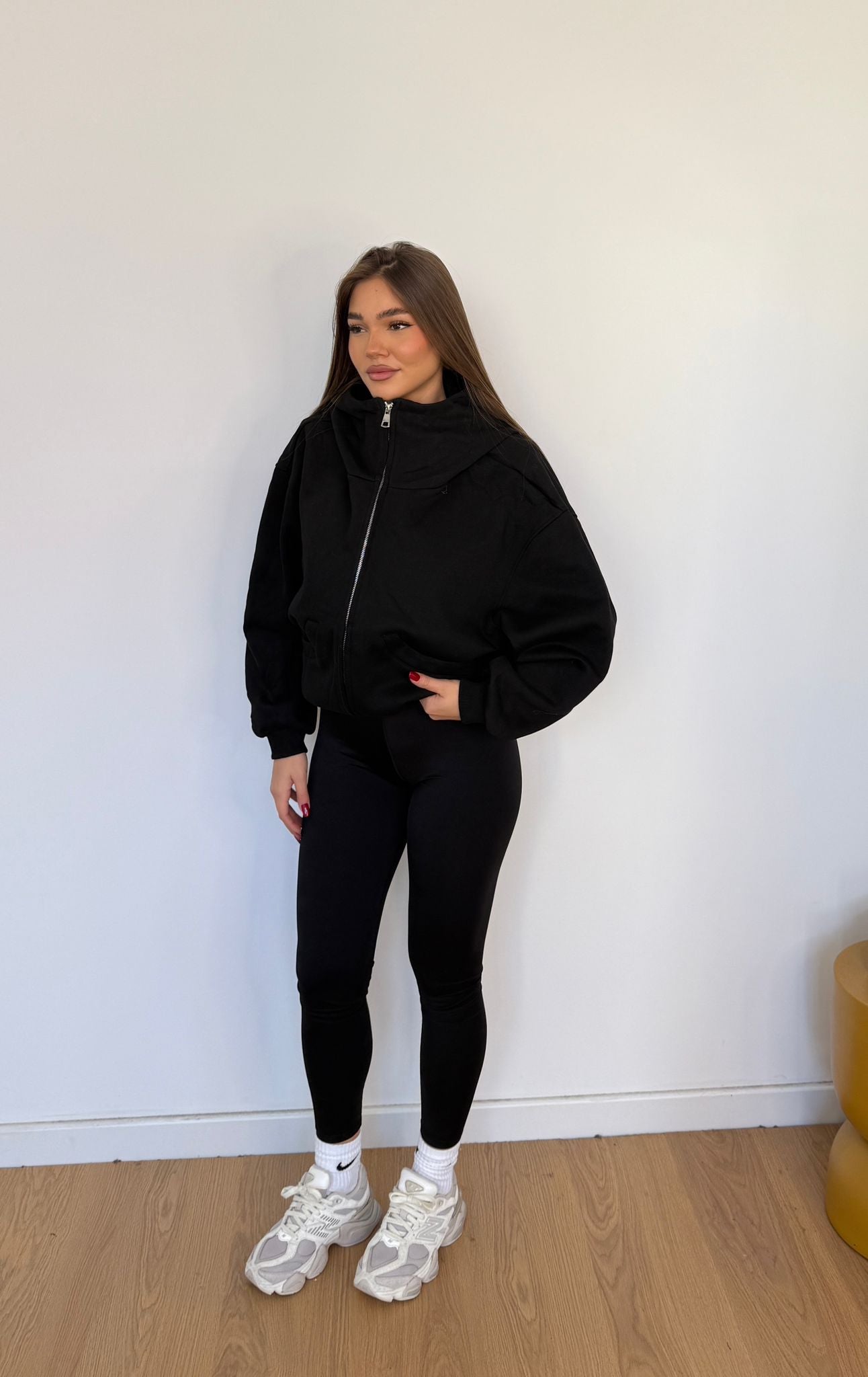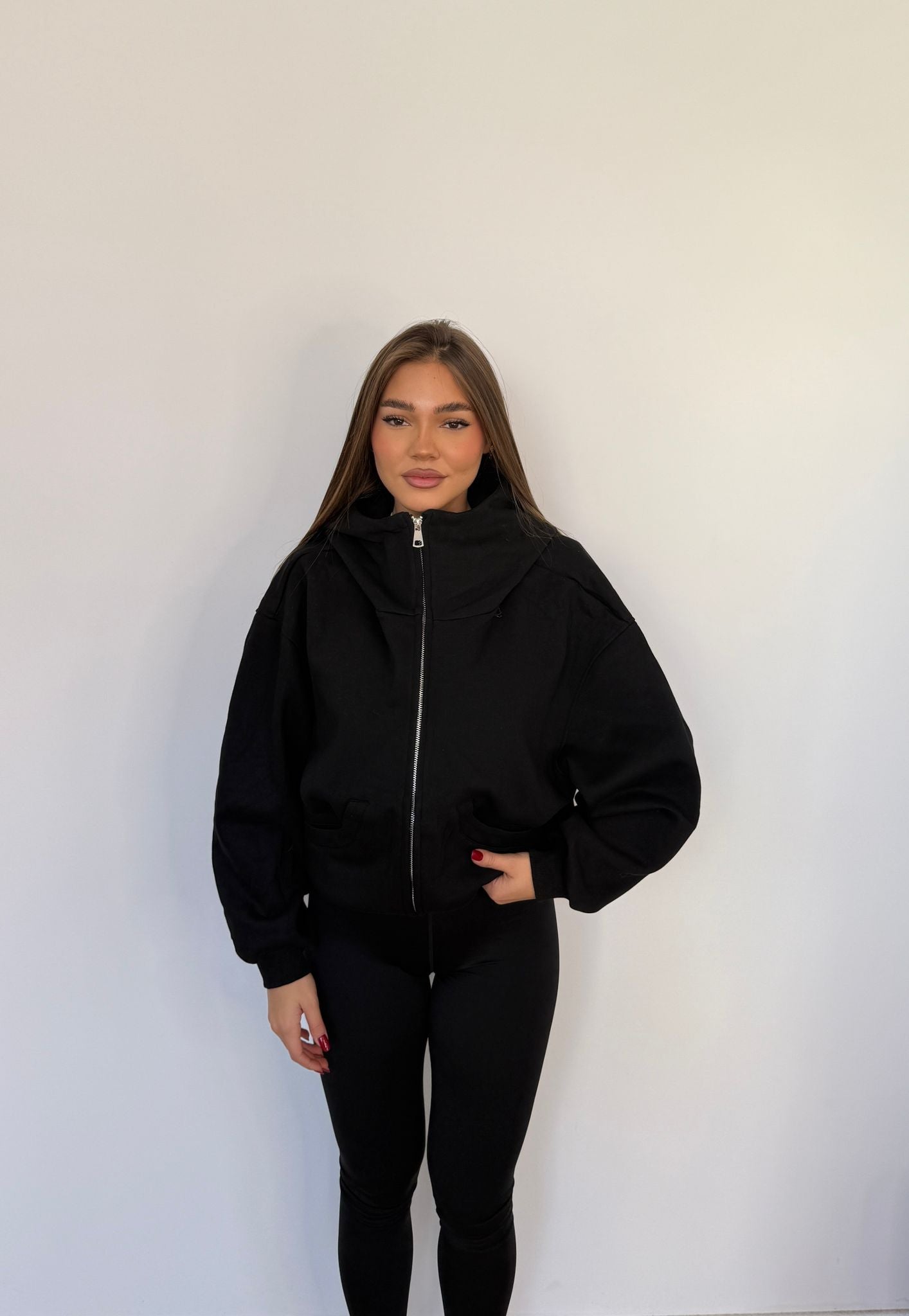 Felpa da donna modello oversize con cappuccio e zip chiusura sul davanti con polsini e vestirà bene fino ad una M/L piena