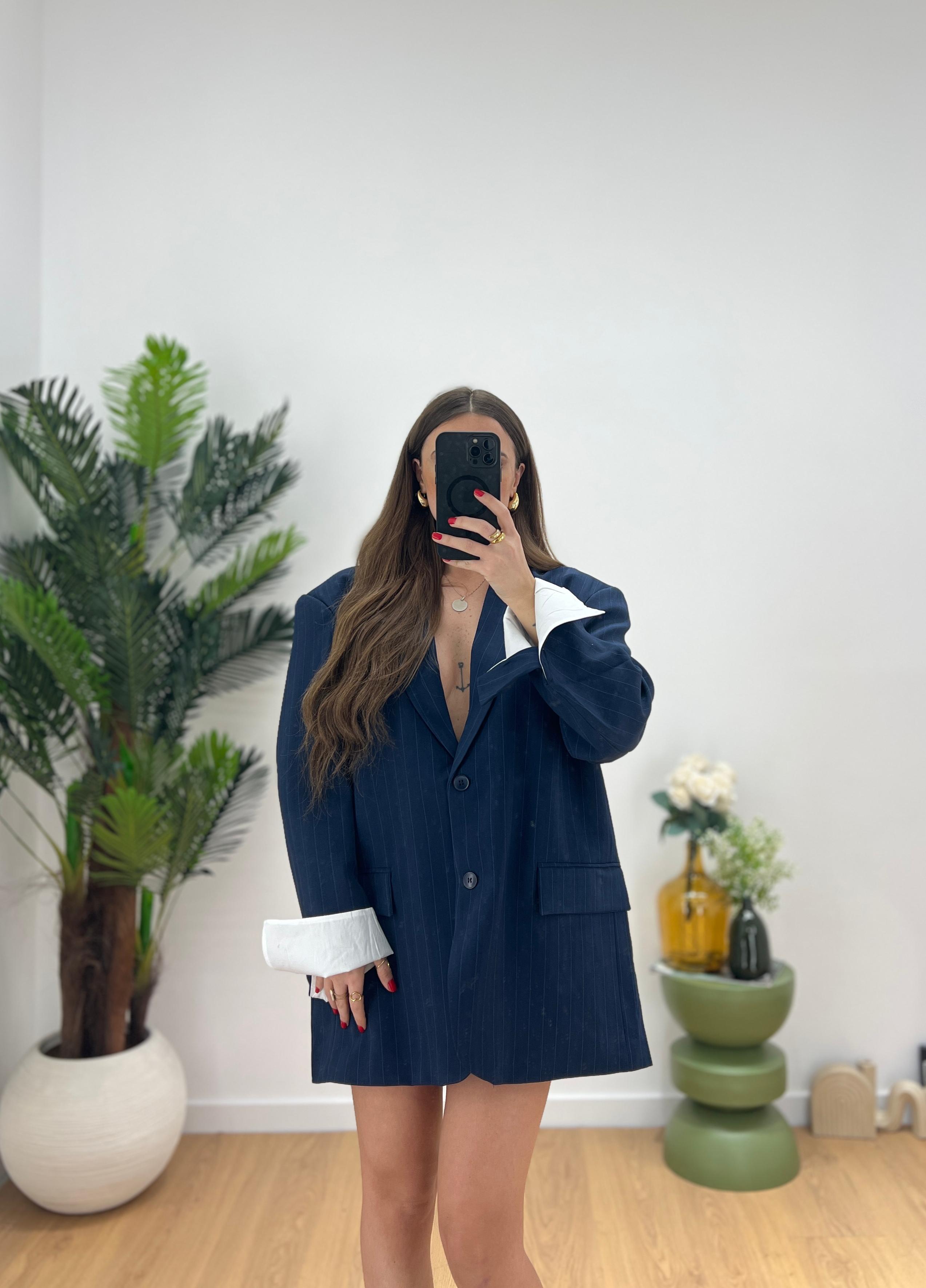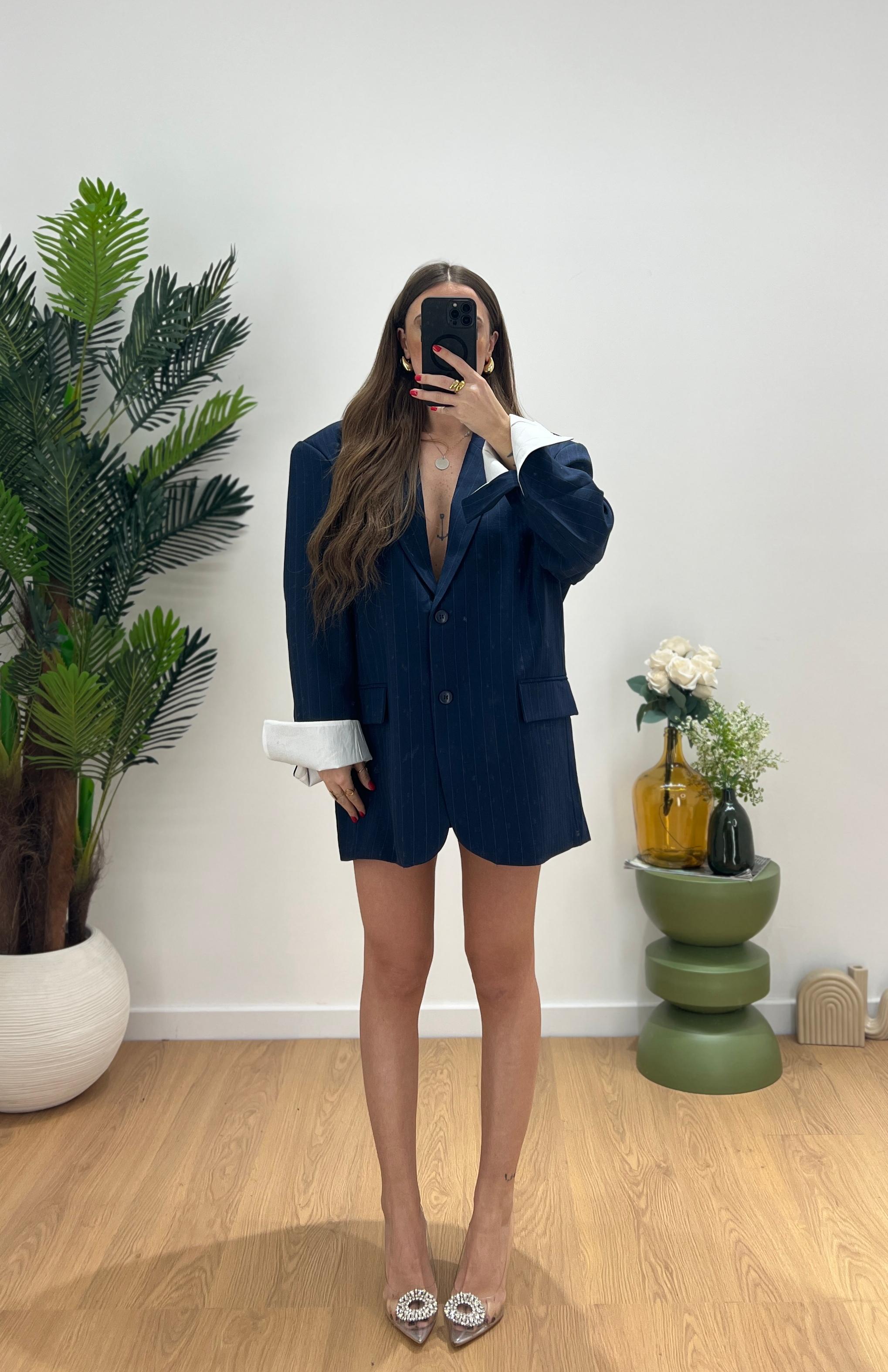 Giacca da donna gessata modello oversize con spalline imbottite e vestirà bene fino ad una M/L piena