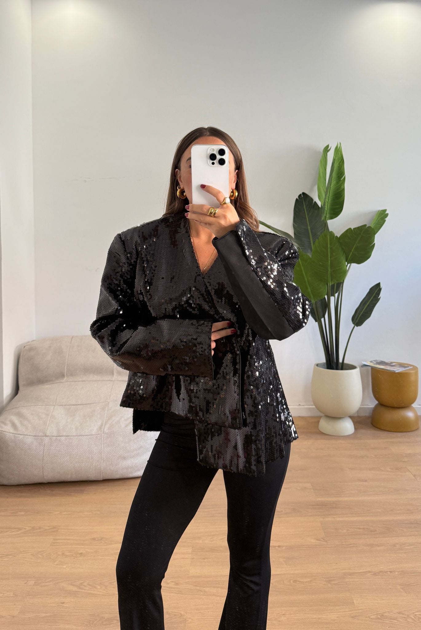Giacca da donna in paillettes con spalline imbottite, foderata internamente e vestirà bene fino ad una 42 piena