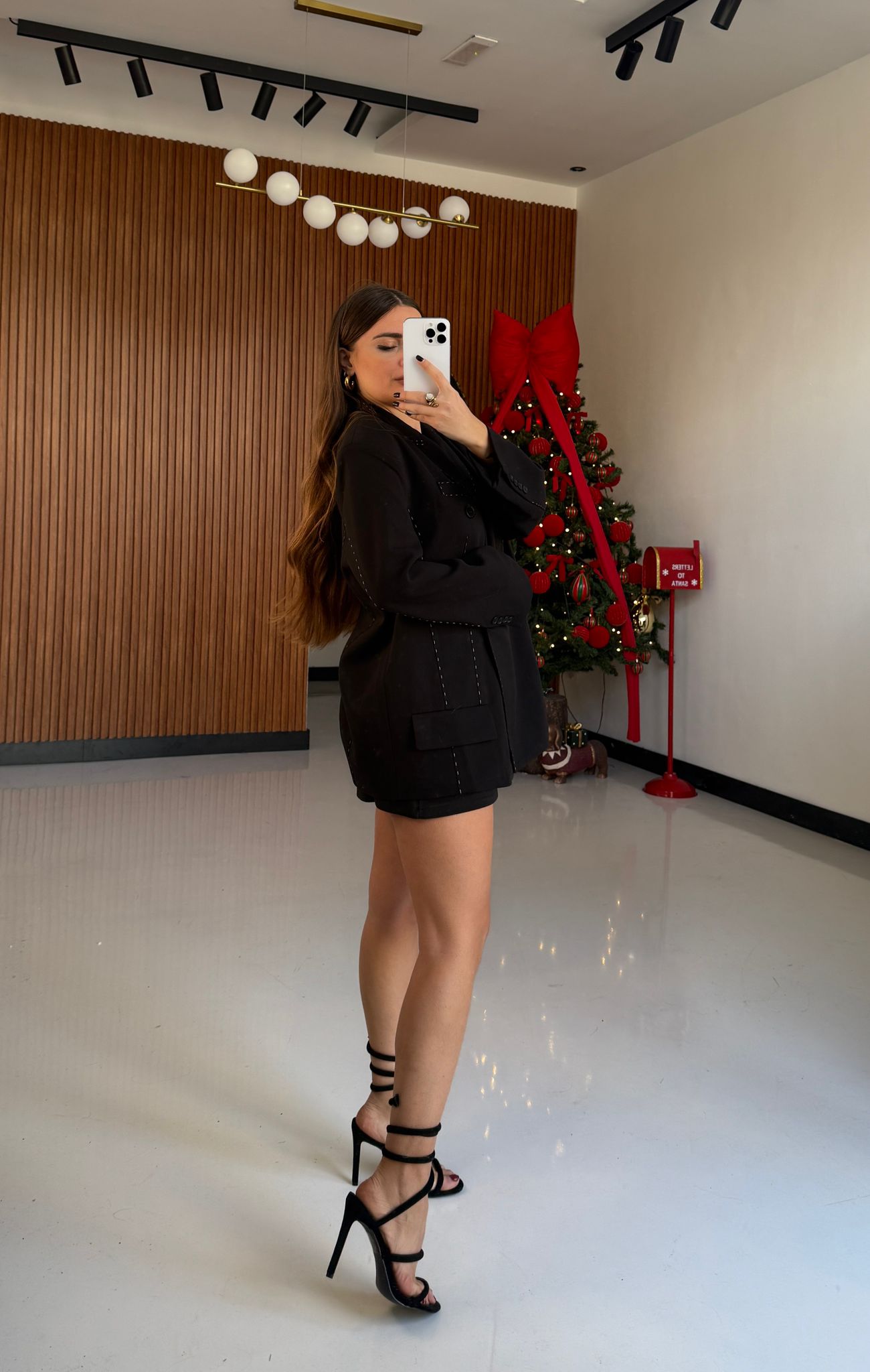 Giacca da donna top quality con spalline imbottite, foderata internamente con vestibilità oversize e veste regolarmente la propria taglia e la modella indossa taglia XS/S