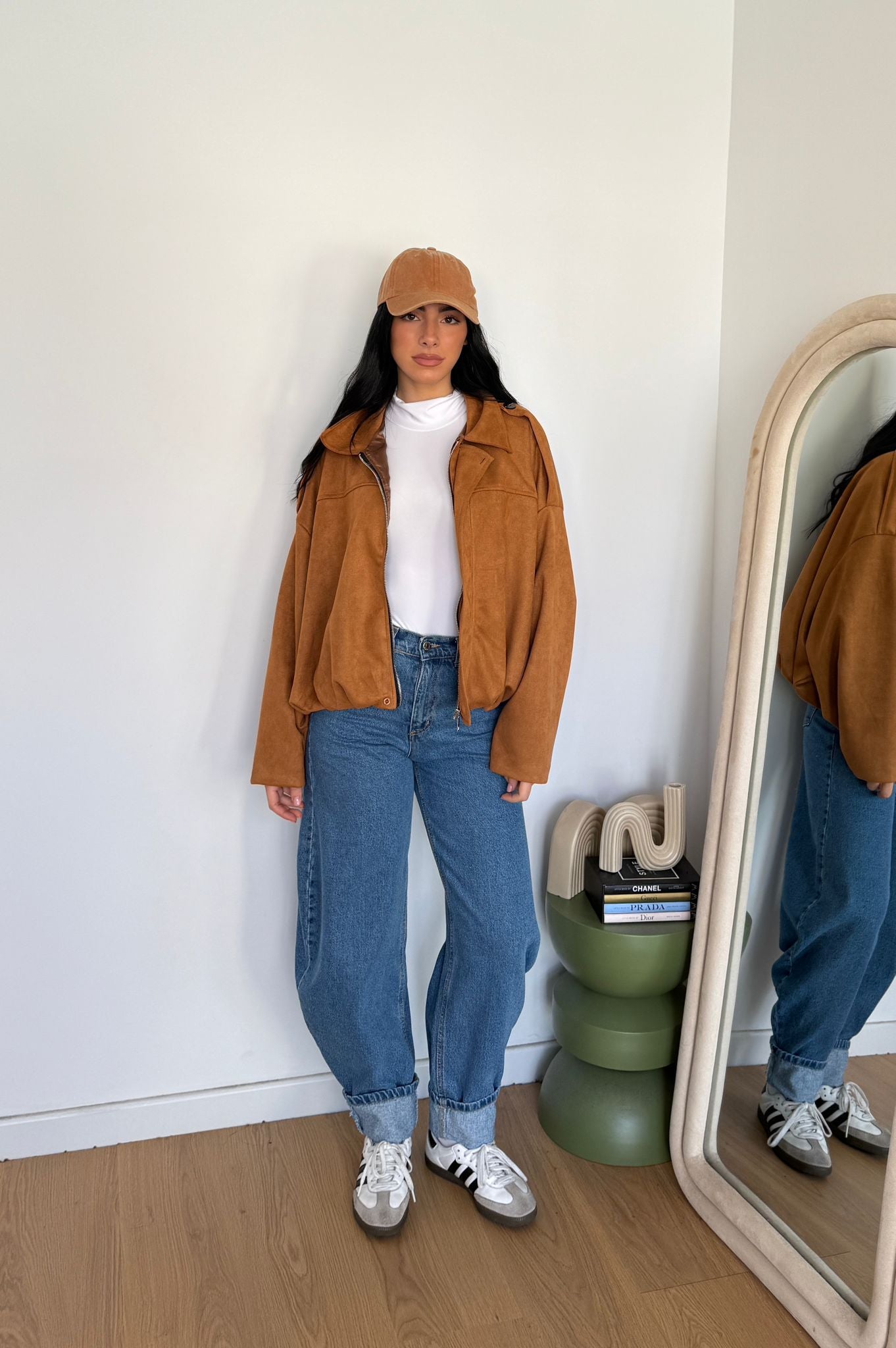 Giubbino da donna tessuto camoscio foderato internamente e veste bene fino ad una M/L