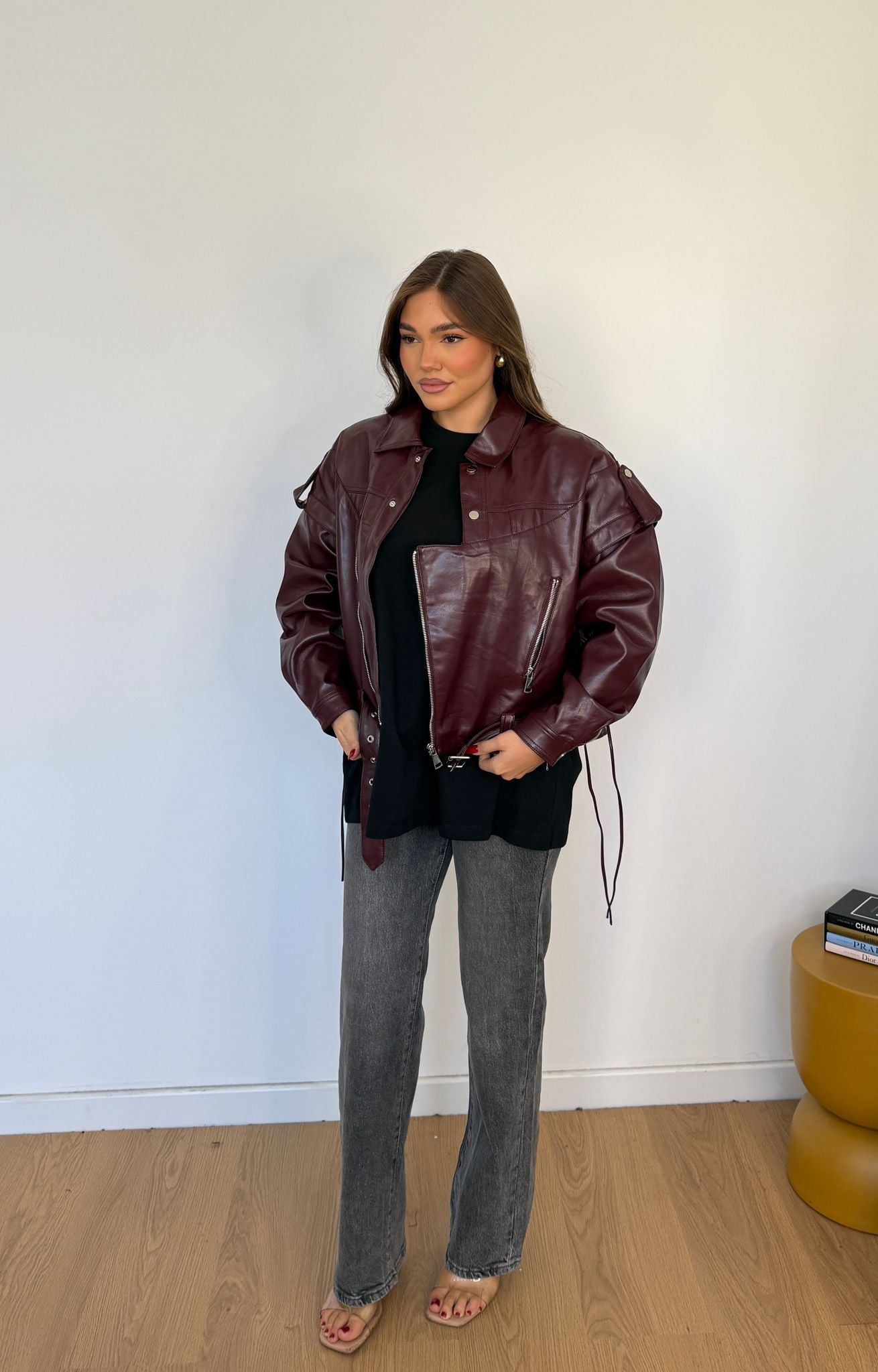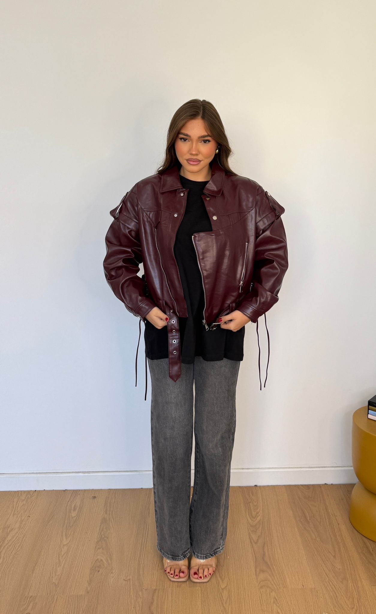 Giubbino da donna in ecopelle foderato internamente, top quality e veste regolarmente la propria taglia e la modella indossa taglia S/M