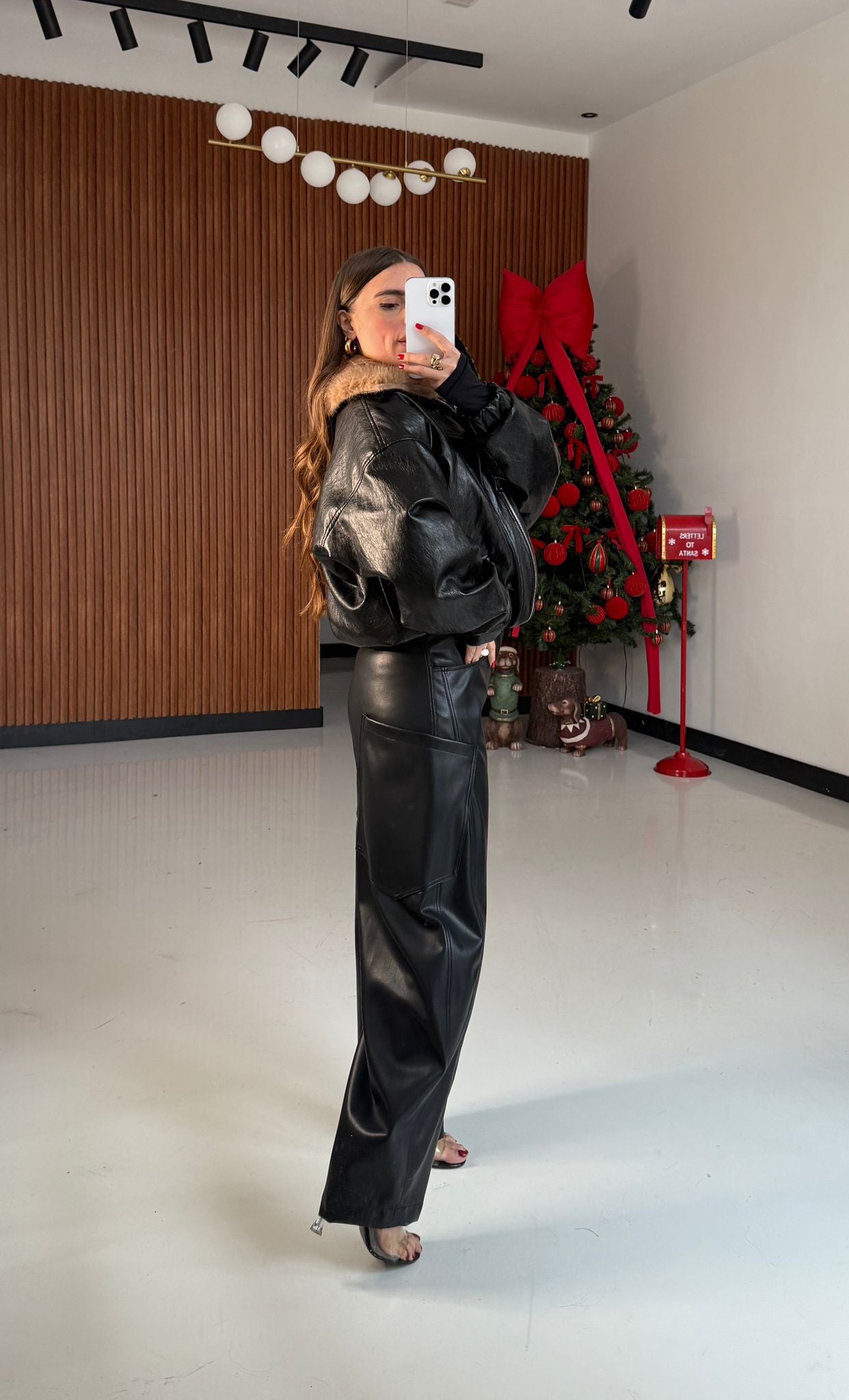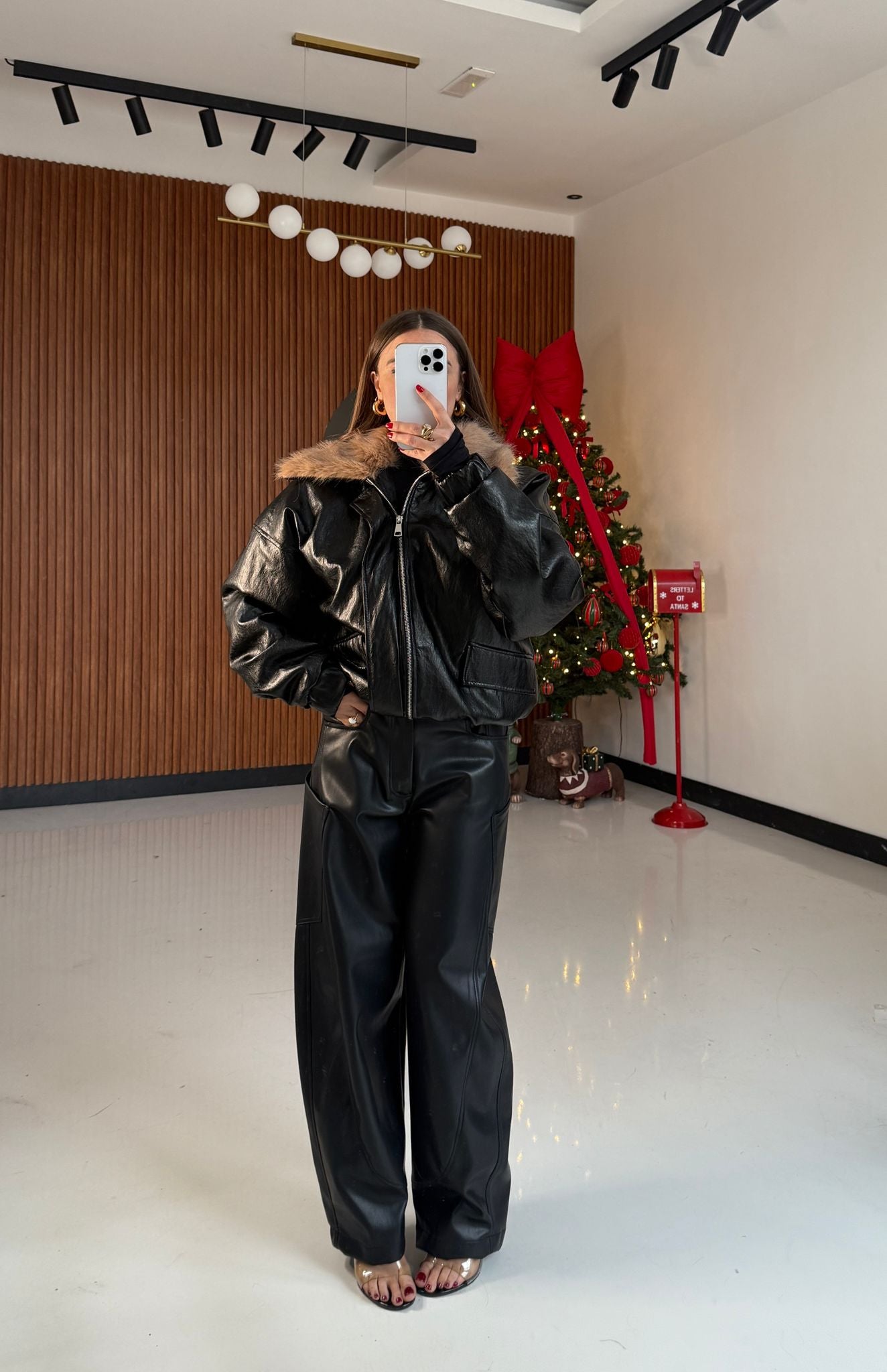 Giubbino da donna in ecopelle con collo in pellicciotto non rimovibile, giubbino foderato internamente, top quality e vestita bene fino ad una M/L piena