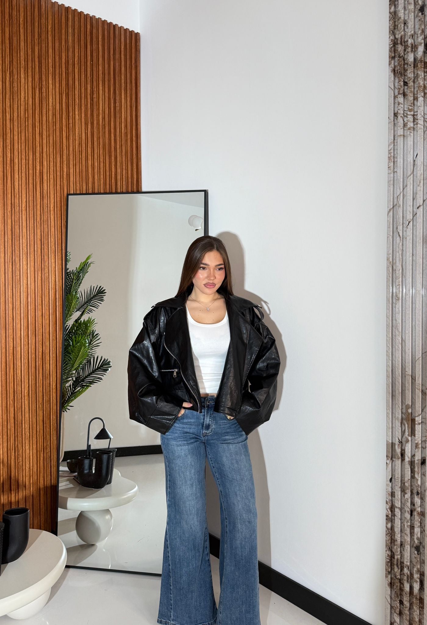 Giubbino in ecopelle foderato internamente, chiusura in zip ed è un top quality e vestirà bene fino ad una M/L piena e la modella è alta 1,65 cm e pesa 52/53 kg