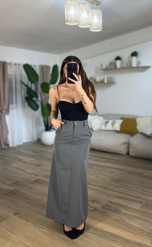 "Esalta la tua femminilità con la gonna Kelly lunga e di taglia regolare, si adatta perfettamente alla tua figura per un look elegante.